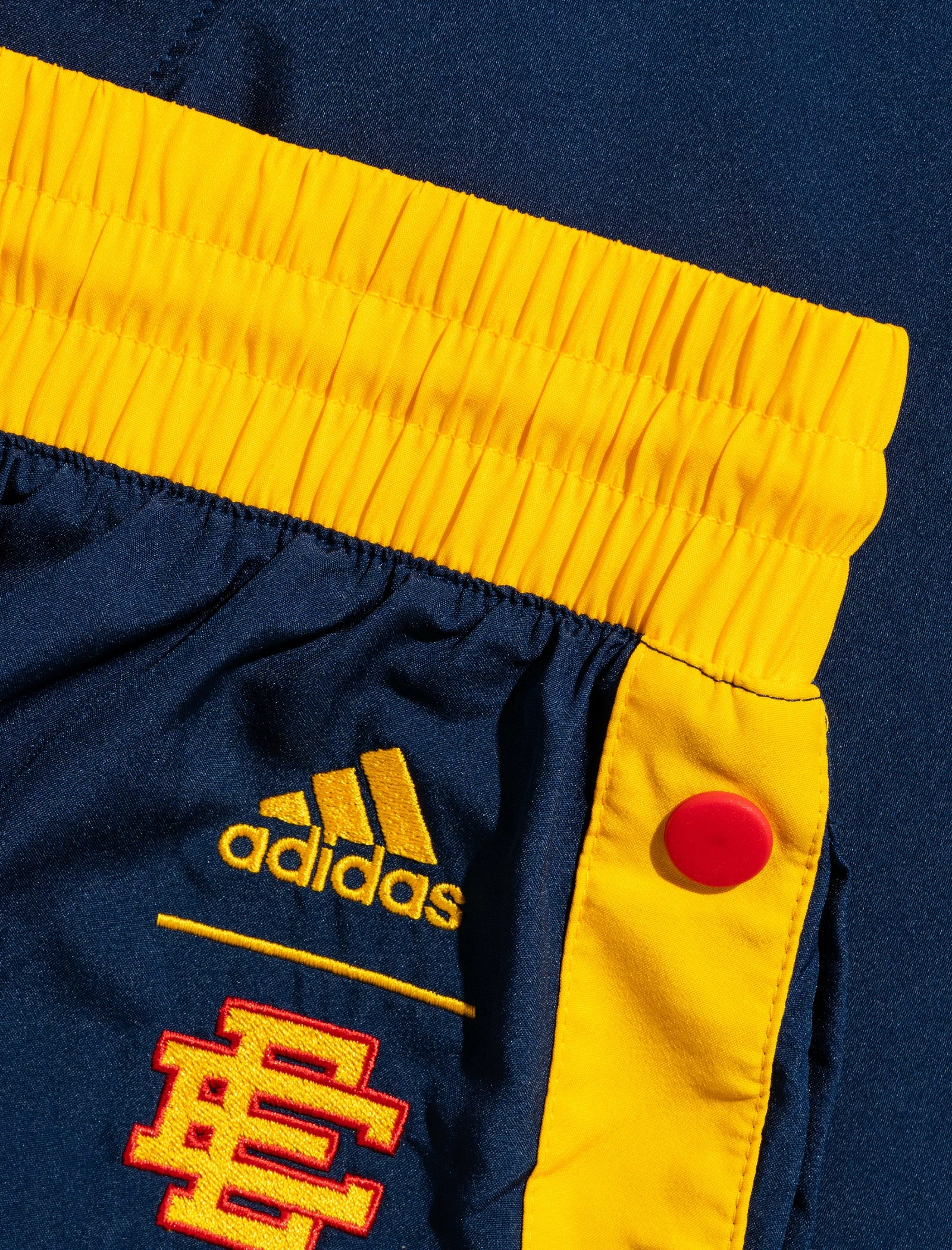 Polyester shorts. Elasticated waistband. Adjustable drawstrings at the waistband. Logo patch at right thigh. Printed logo on the left thigh. Snap button sides. – Polyester SKU: HB0738-NVY