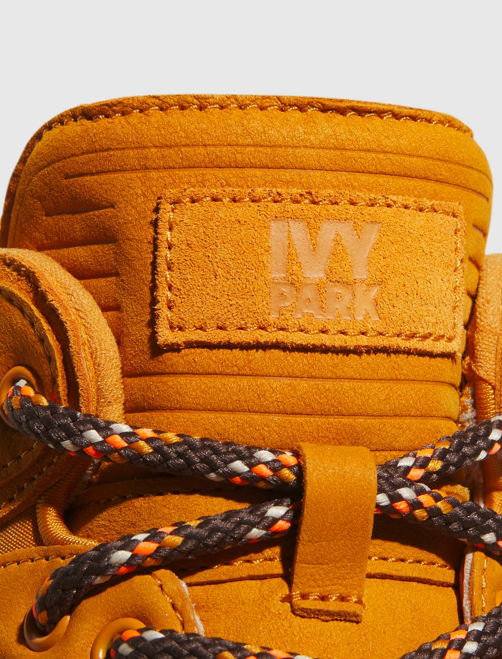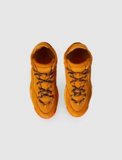High top sneakers. Polyester textile underlay. Suede overlays around the toe, lower side panels, eyelet panels, forefoot, heel counter, and collar. Suede tongue. Suede logo stamped patch on the tongue. Front lacing with nylon rope laces. Padded neoprene collar. EVA foam and rubber midsole. Thick rubber outsole with herringbone tread. – Suede, and polyester upper. SKU: ID5105