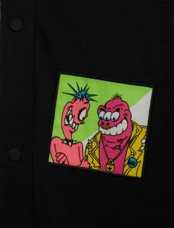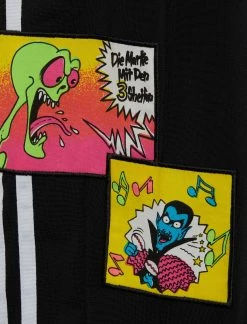 Regular-fit trackpants. Adjustable drawstring waistband. Two pockets at sides. Graphic cartoon patches throughout. Signature stripes at sides. Snap closures at side seams. – 100% Recycled Polyester SKU: H53370