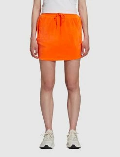 Velour skirt. Tight-fit. Adjustable elasticized drawstring waistband. Two zip pockets at sides. Embroidered logo at front. Signatures stripes at sides. – 93% Polyester, 7% Elastane Velour SKU: H53363
