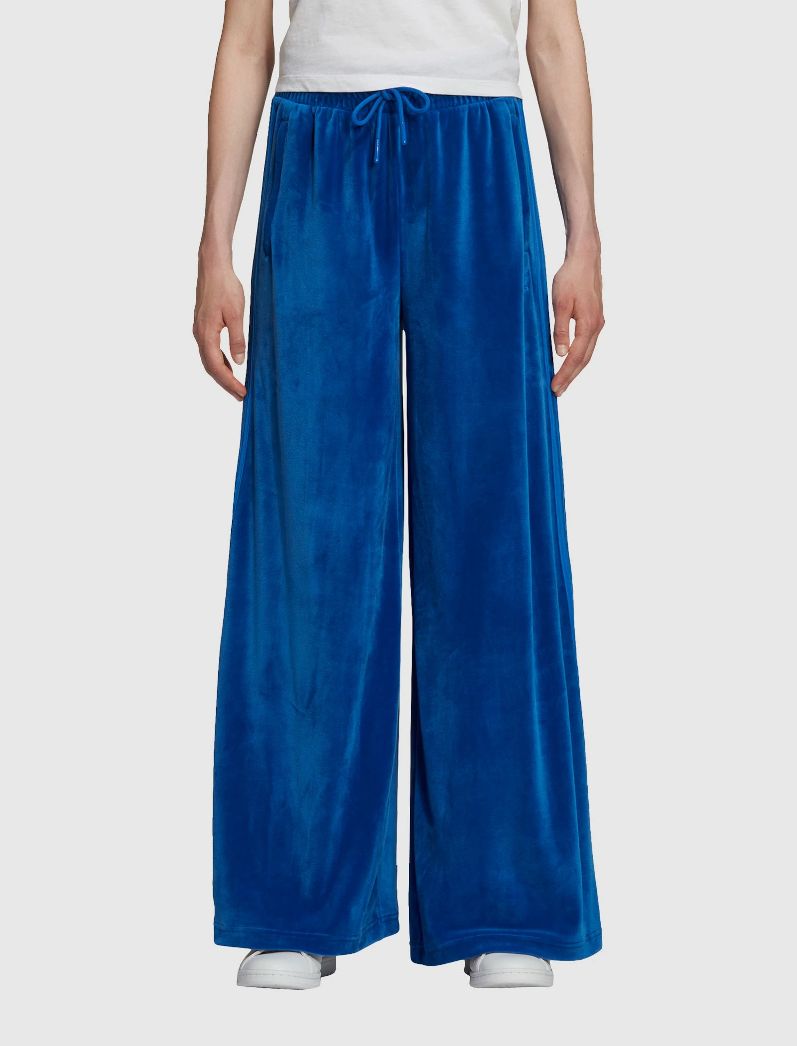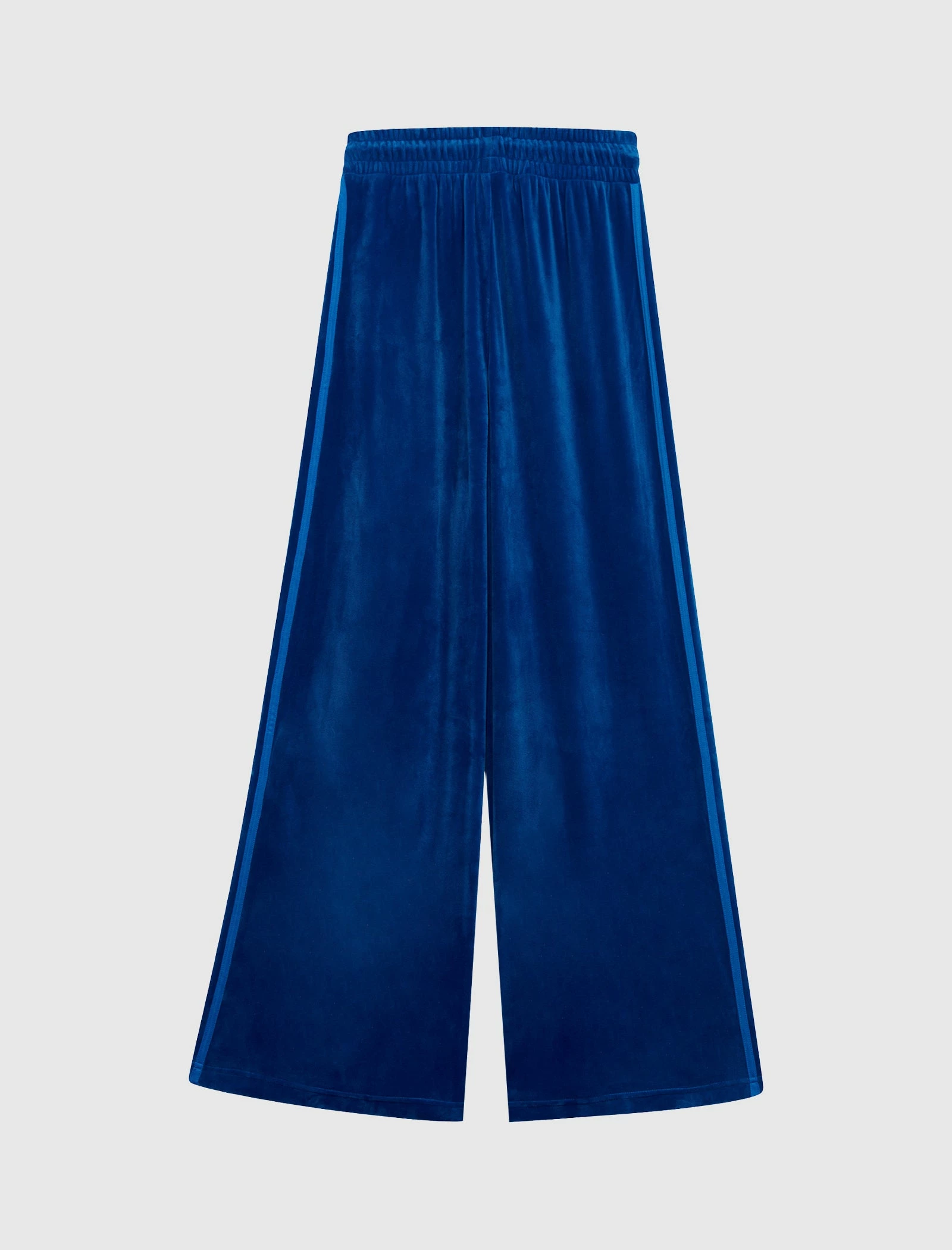 High-waisted velour track pants. Adjustable drawstring waistband. Regular-fit. Two zip pockets at sides. Embroidered logo at front. Signature stripes at sides. – 93% Polyester, 7% Elastane SKU: H50961