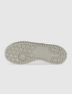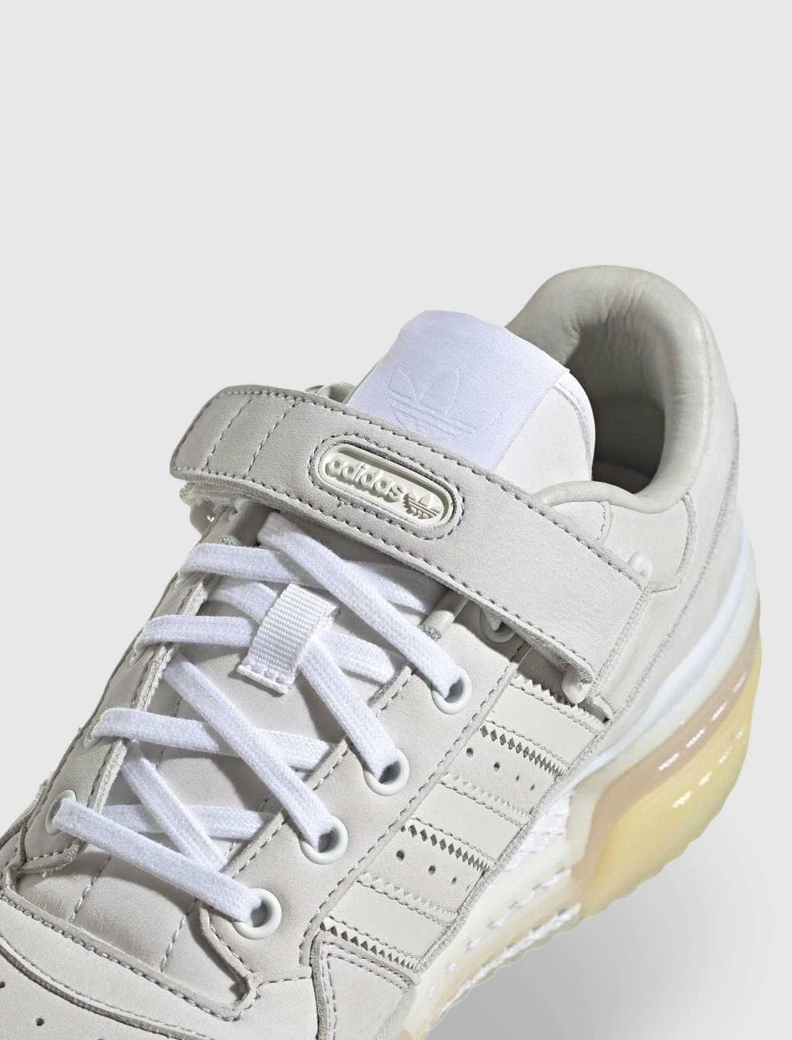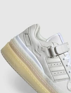 Low-top sneaker. Leather upper. Leather overlays around the toe, eyelets, and collar. Suede overlay on the side panel and heel counter. Leather stripes stitched on the side panel. Perforated toe box. Front lacing. Ankle strap with an adjustable metal buckle. Triple platform rubber midsole. Net detail on the instep. Triple welt stitching. Rubber outsole. – Leather and Suede upper SKU: GZ8644