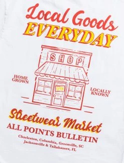 Short sleeve cotton t-shirt. Crewneck. Graphic text at chest and back. Graphic print at back. – 100% Cotton SKU: STREETWEAR-MARKET-TEE-WHTXRED