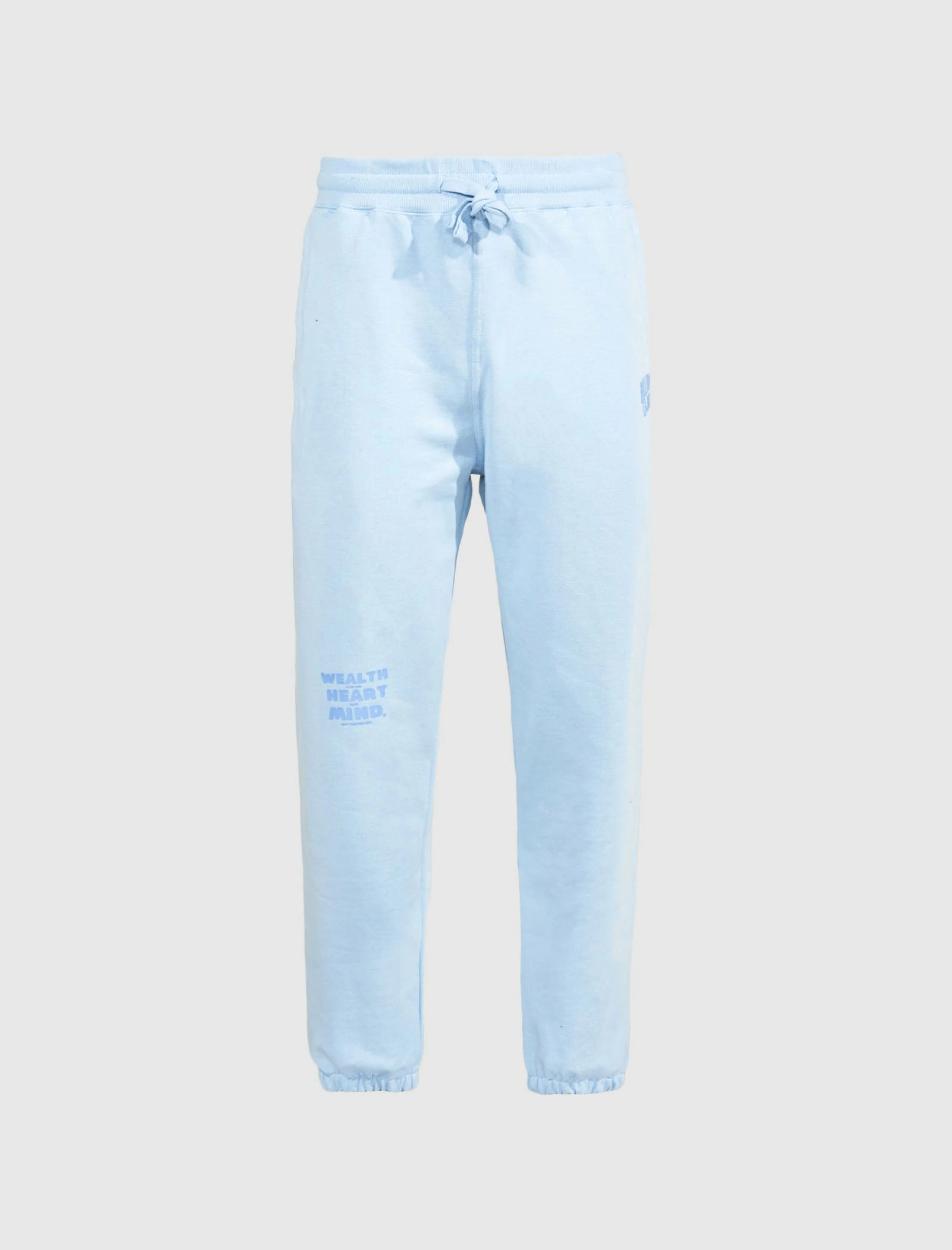Cotton sweatpants. Elasticized drawstring waistband. Two pockets at sides. Single pocket at back. Graphic logo text and text at front. – 100% Cotton SKU: 821-8100-BLU