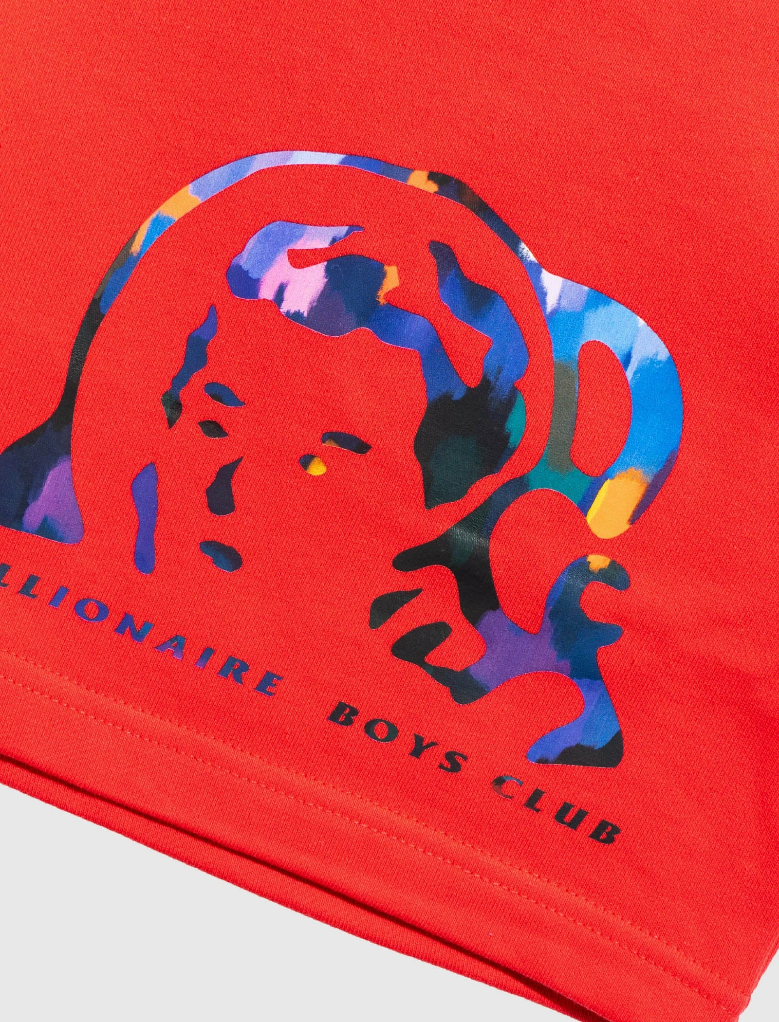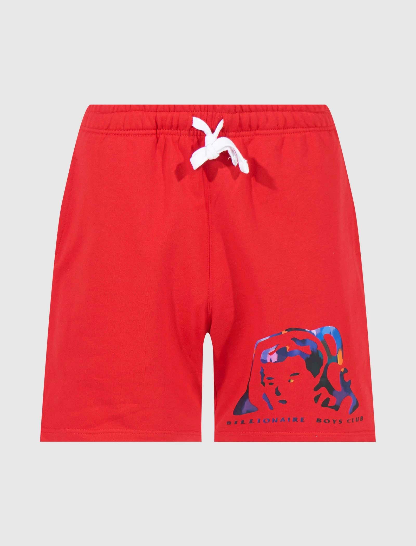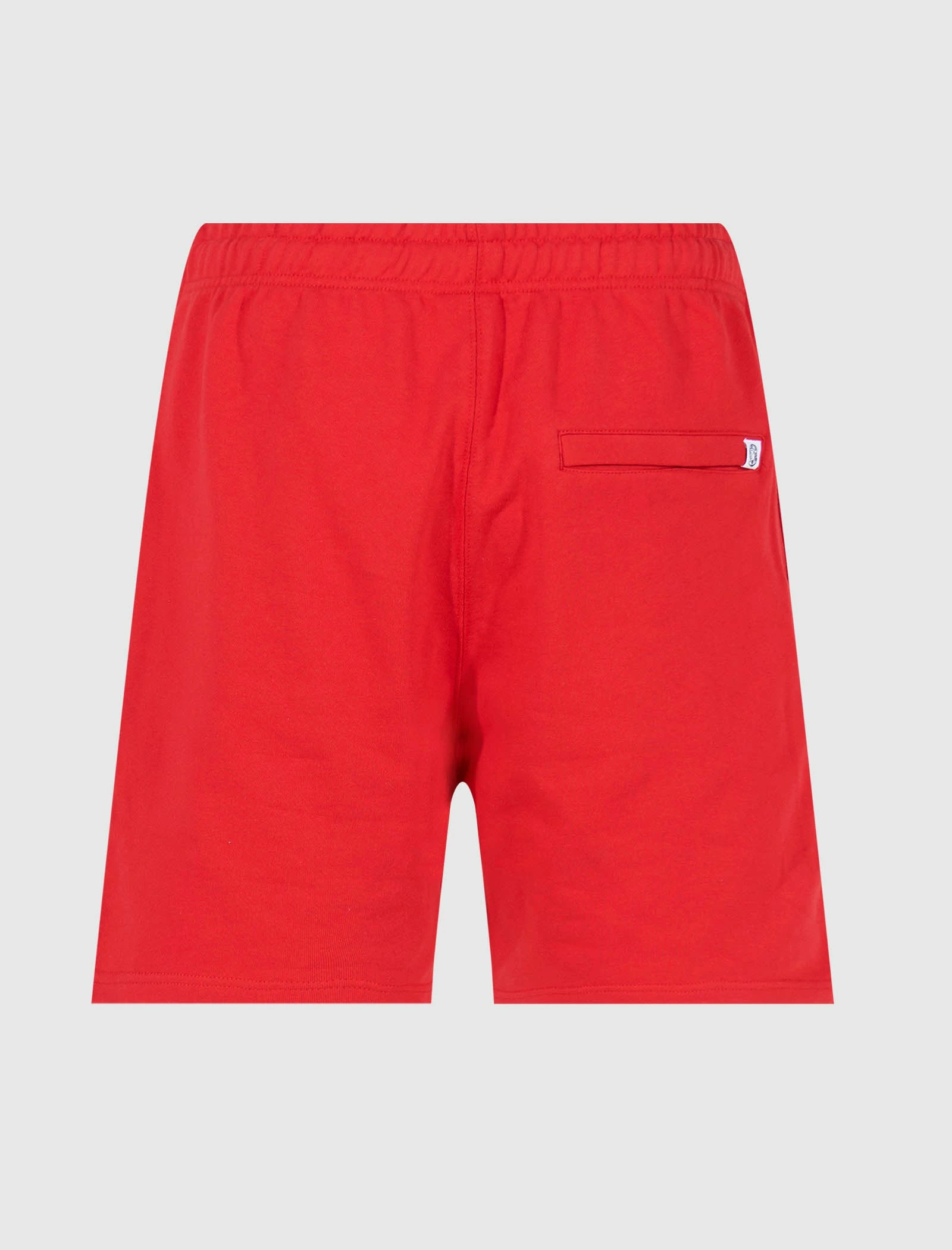 Cotton-blend sweat shorts. Adjustable drawstring waistband. Two pockets at sides. Single pocket at back. Graphic logo print and text at front. – 80% Cotton, 20% Polyester SKU: 821-2103-RED