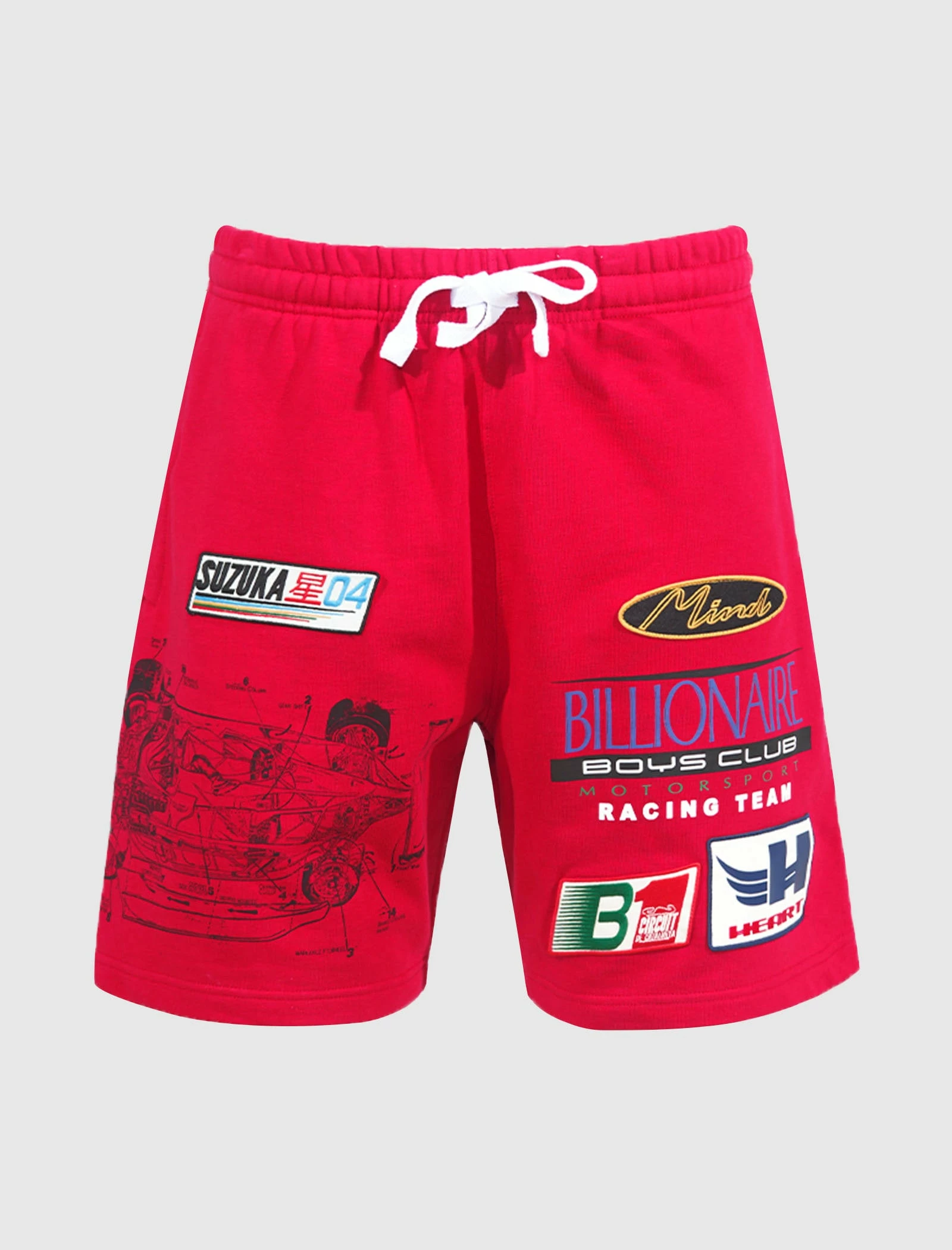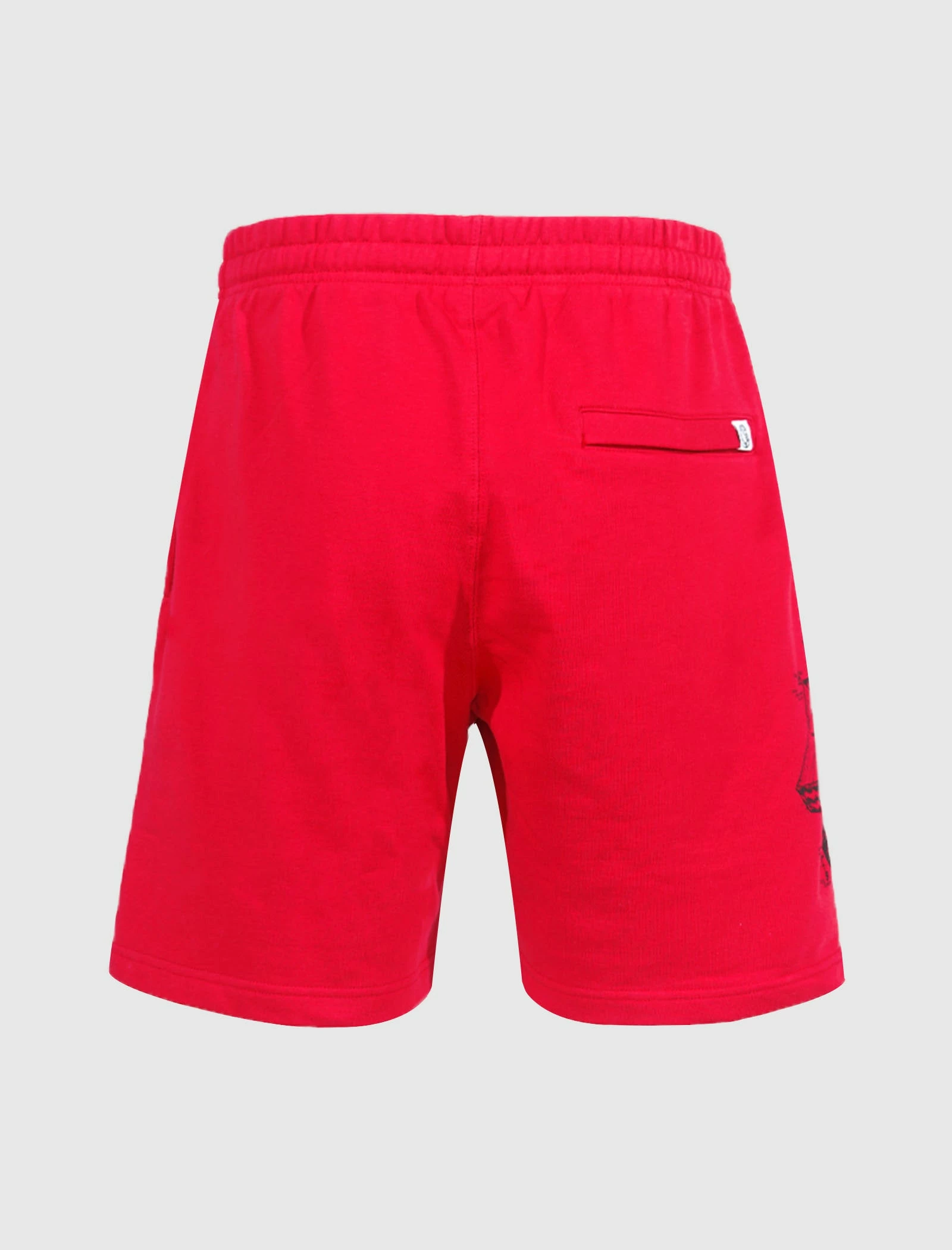 Cotton-blend shorts. Adjustable drawstring waistband. Two pockets at sides. Single pocket at back. Graphic logo text, texts and prints at front. – 80% Cotton, 20% Polyester SKU: 821-6104-RED
