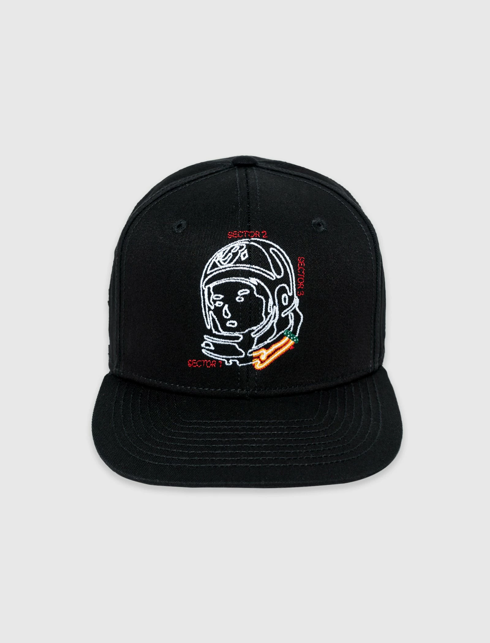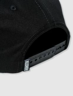 Cotton canvas snapback hat. Flat brim. Embroidered logo on the front panel. Embroidered graphic logos on the sides. Adjustable snap back closure. – Cotton SKU: 821-6800-BLK