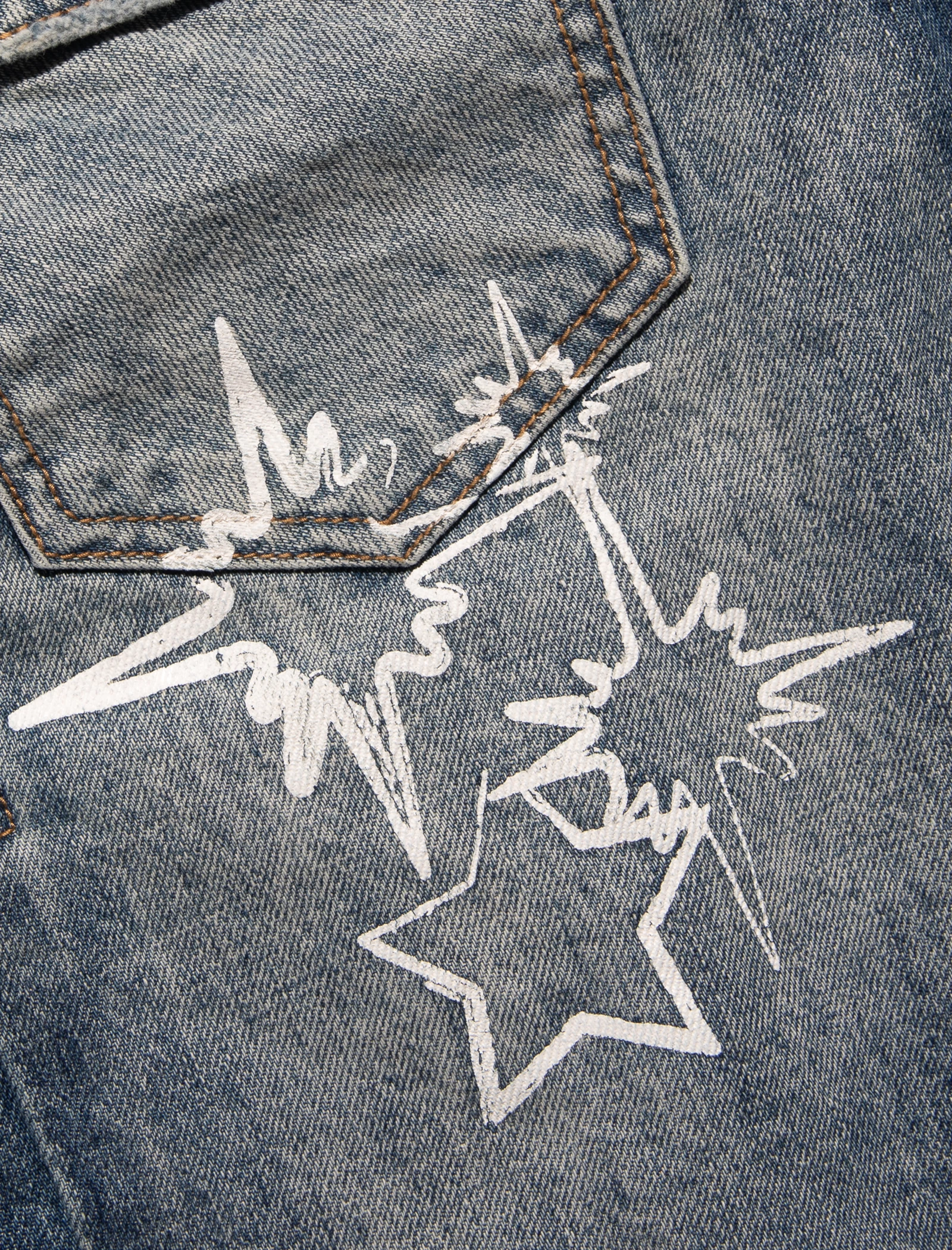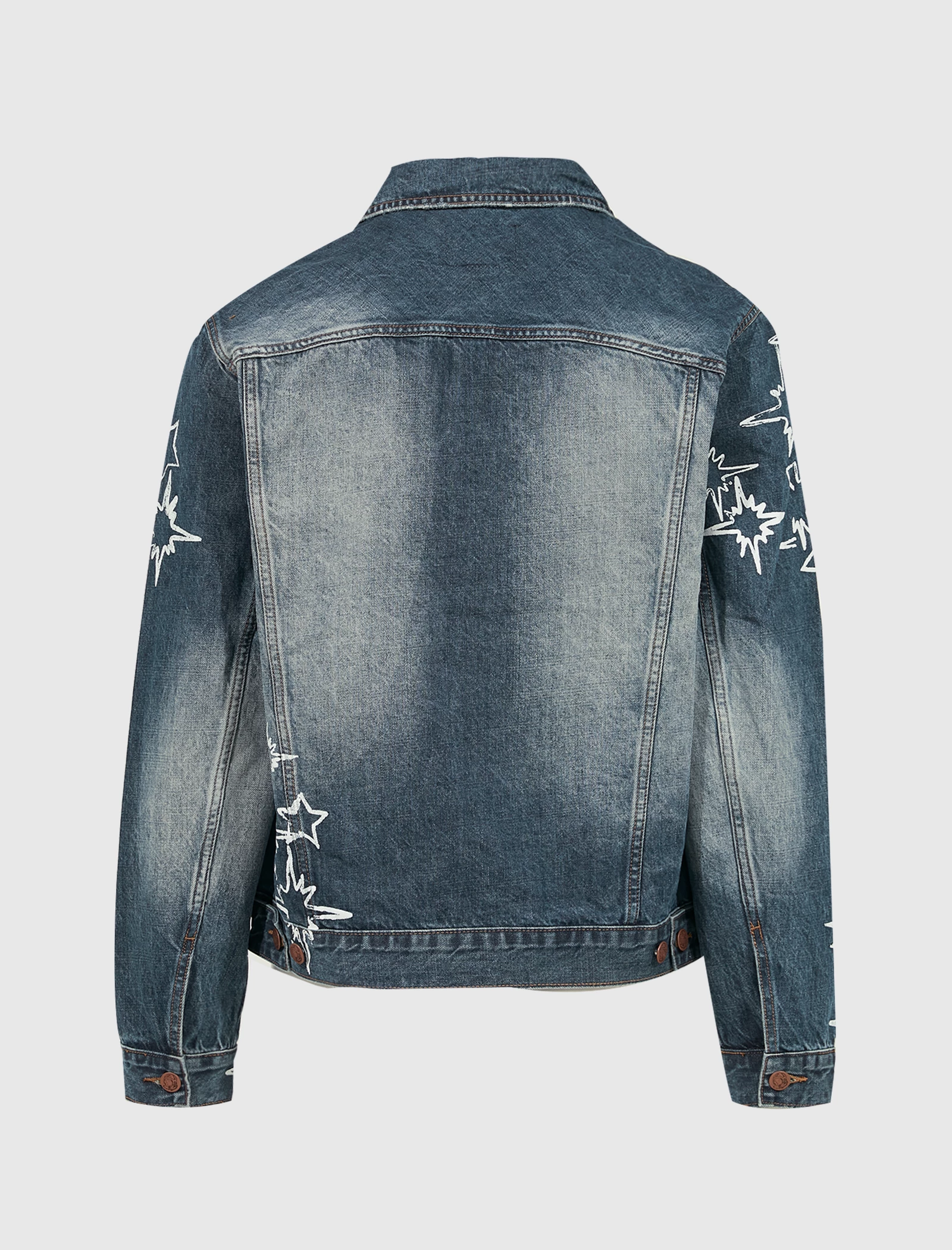 Denim jacket. Classic collar. Graphic prints throughout. Two pockets at chest. Two pockets at sides. Leather logo patch. Button closures at front. – 100% Cotton SKU: 811-9404