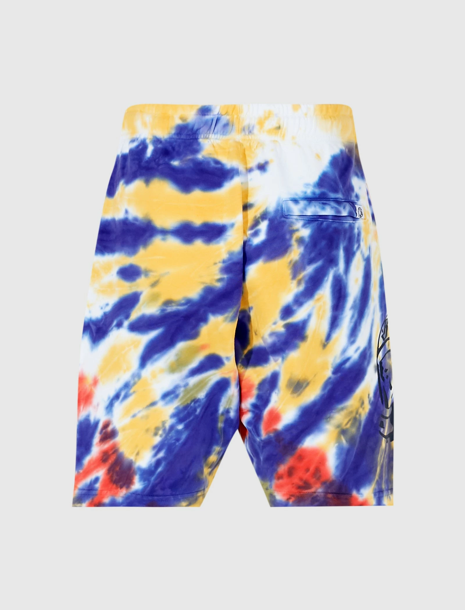 Tie-dye print shorts. Adjustable drawstring waistband. Two pockets at sides. Single pocket at back. Graphic logo script at side. – 100% Cotton SKU: 811-6109