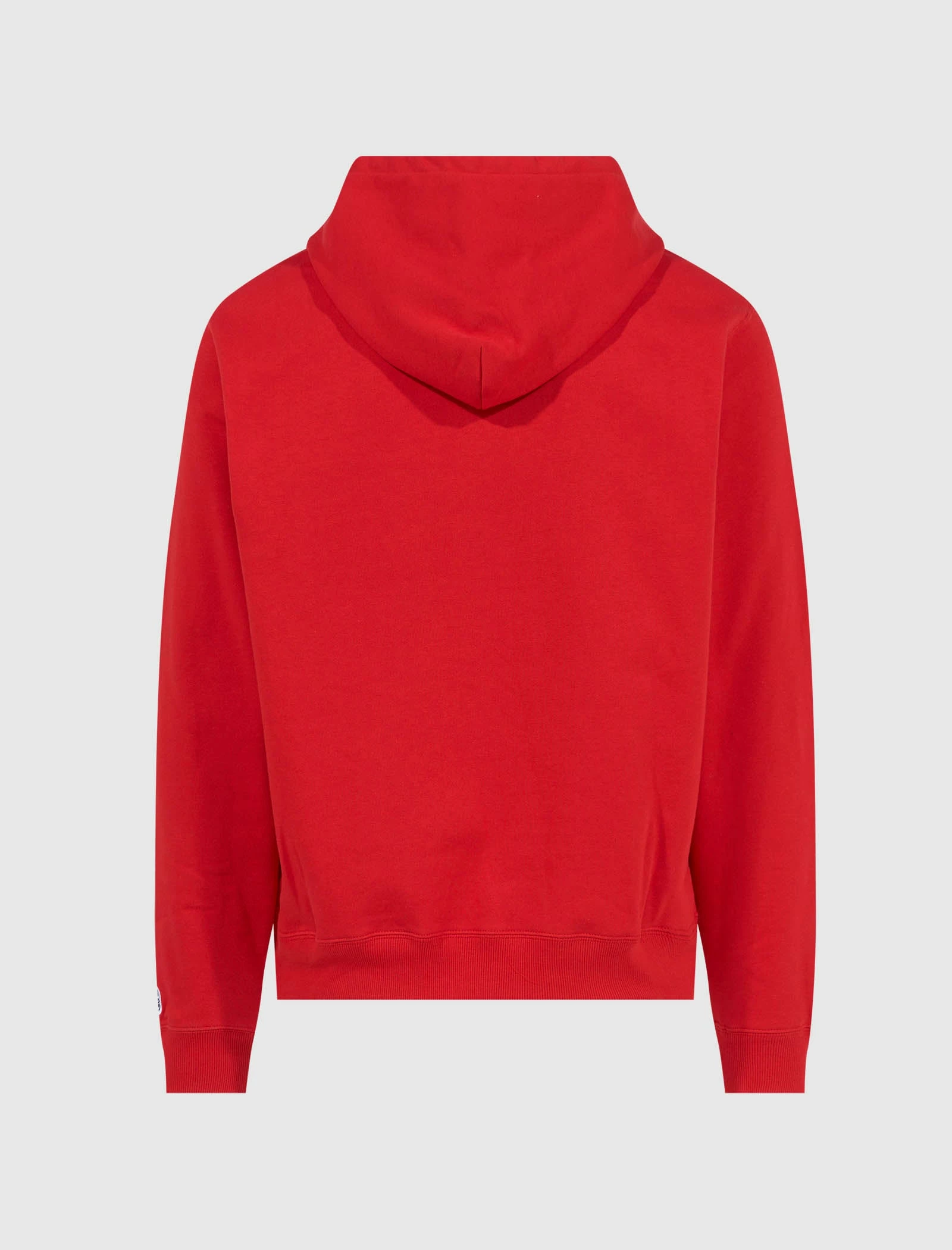 Pullover hoodie. Adjustable drawstring hood. Graphic logo print and text at chest. Kangaroo pocket at front. Embroidered logo at sleeve. Ribbed cuffs and hem. – 100% Cotton SKU: 821-2302-RED