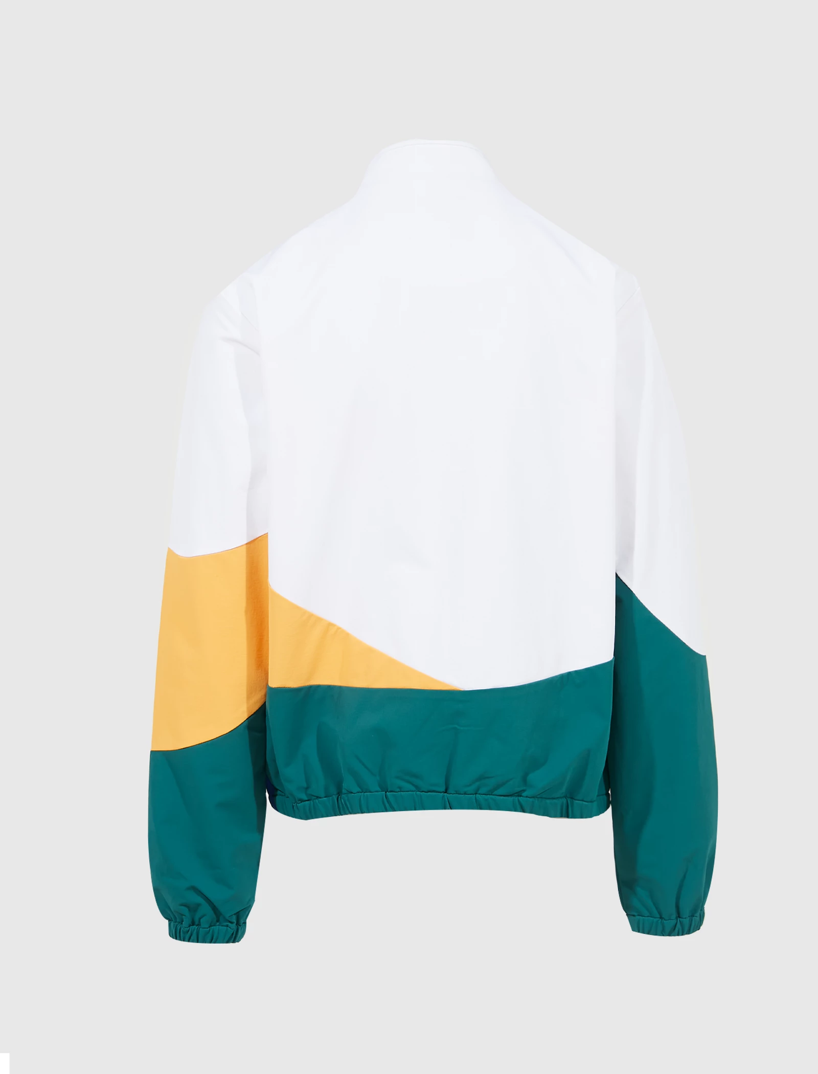 Track jacket. High neck. Graphic logo text at chest. Two pockets at sides. Elasticized cuffs and hem. Zip closure at front. – 92% Nylon, 8% Spandex SKU: 821-1107
