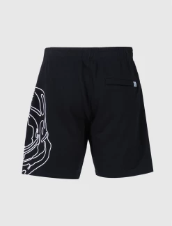 Cotton sweatshorts. Elasticized drawstring waistband. Two pockets at sides. Single pocket at back. Piped logo print motif at side. – 100% Cotton SKU: 821-3105-BLK