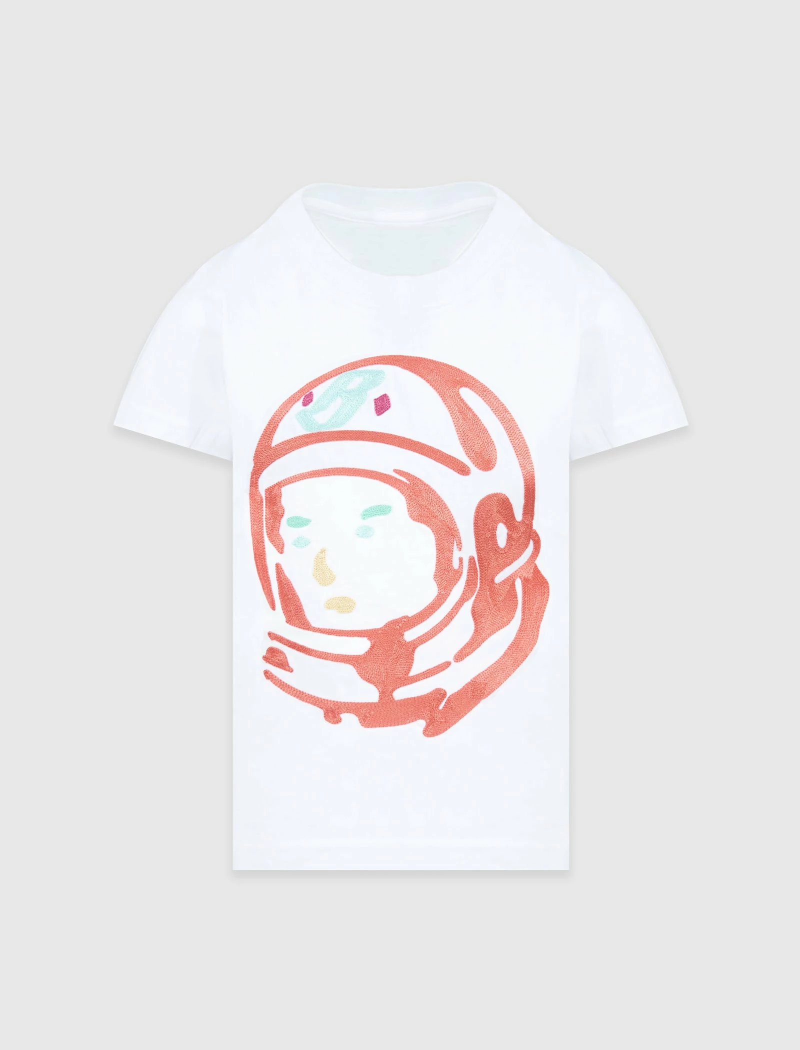 Kids short sleeve t-shirt. Ribbed crewneck collar. Printed logo at center chest. Small logo printed beneath the back of the collar. – Cotton SKU: 823-6302-WHT