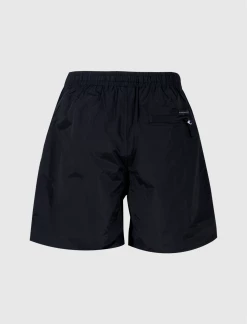 Nylon shorts. Elasticized drawstring waistband. Two pockets at sides. Single zip pocket at back. Graphic logo text at front. – 100% Nylon SKU: 821-3100-BLK