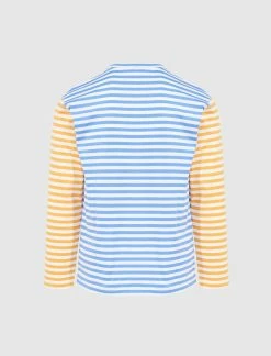 Long sleeve cotton t-shirt. Crewneck. Stripes throughout. Embroidered logo print at chest. – 100% Cotton SKU: P1T318-BLUXYEL
