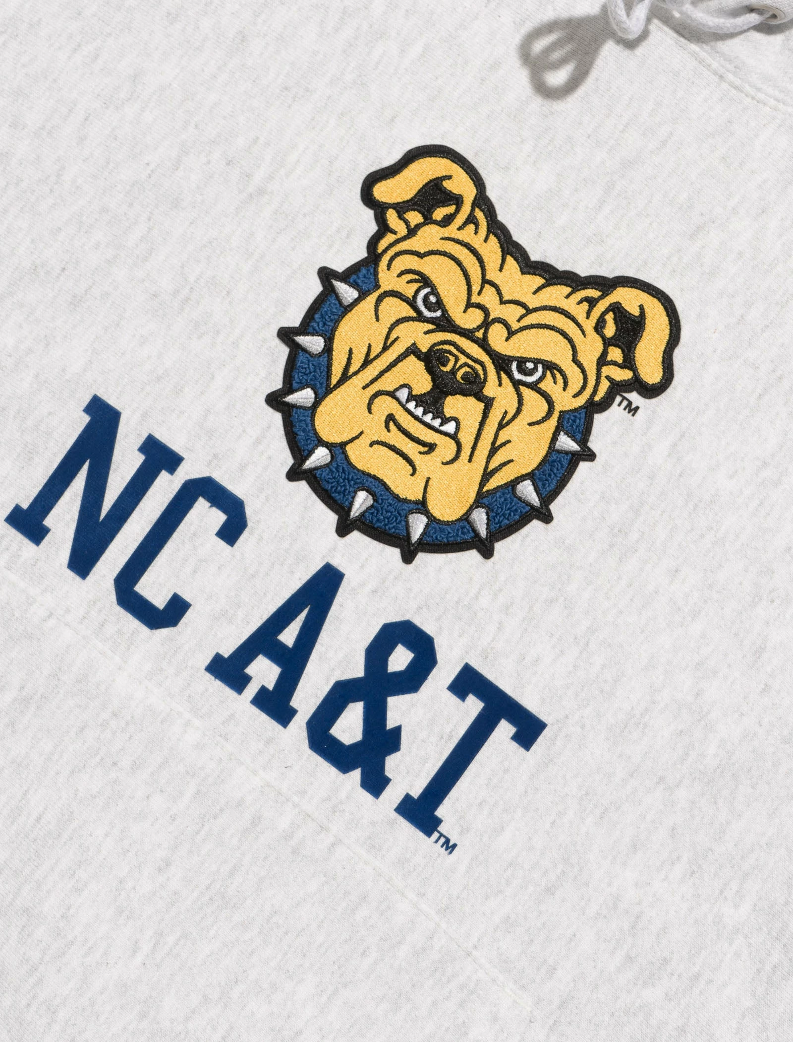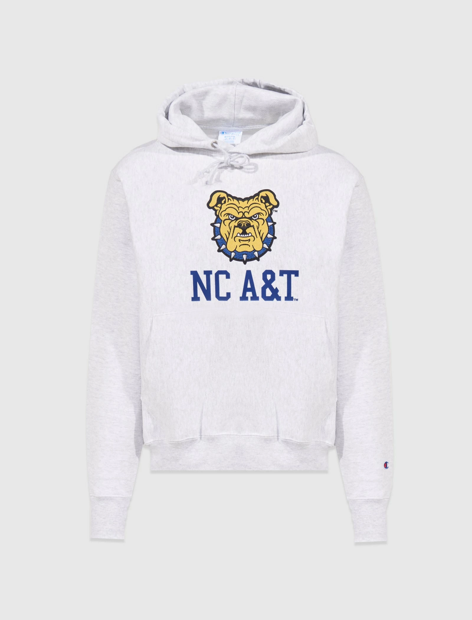 Cotton-blend pullover hoodie. Adjustable drawstring hood. Embroidered college text and print at chest. Kangaroo pocket at front. Embroidered brand logo print at sleeve. – 82% Cotton, 18% Polyester SKU: NC-A&T-HOODIE