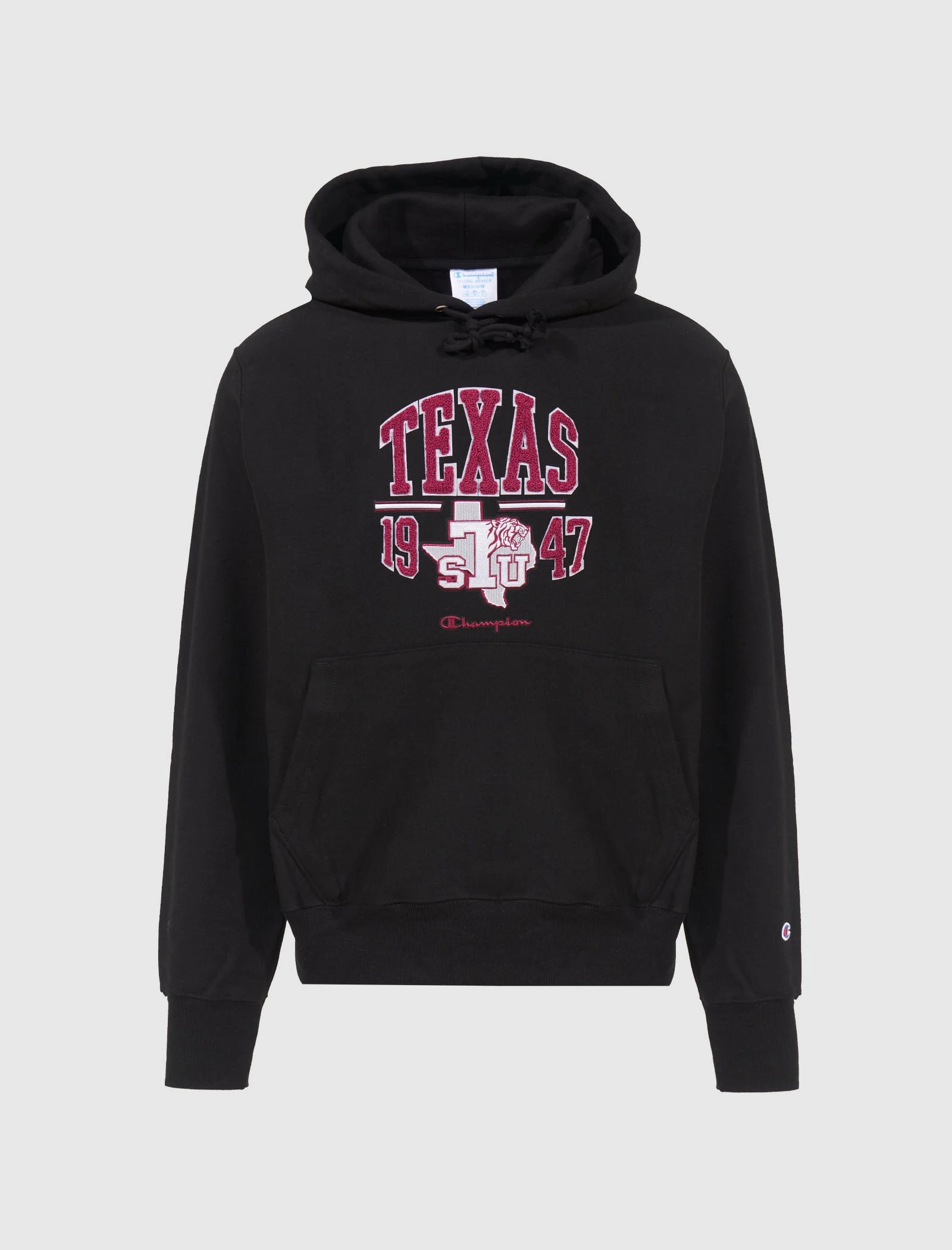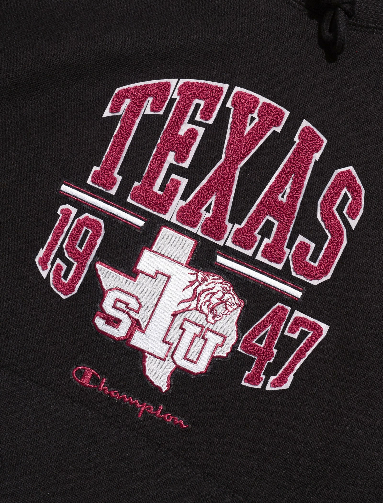 Pullover cotton-blend hoodie. Adjustable drawstring hood. Embroidered college text, print and date at chest featuring brand logo text. Kangaroo pocket at front. – 82% Cotton, 18% Polyester SKU: TEXAS-SOUTHERN-HOODIE