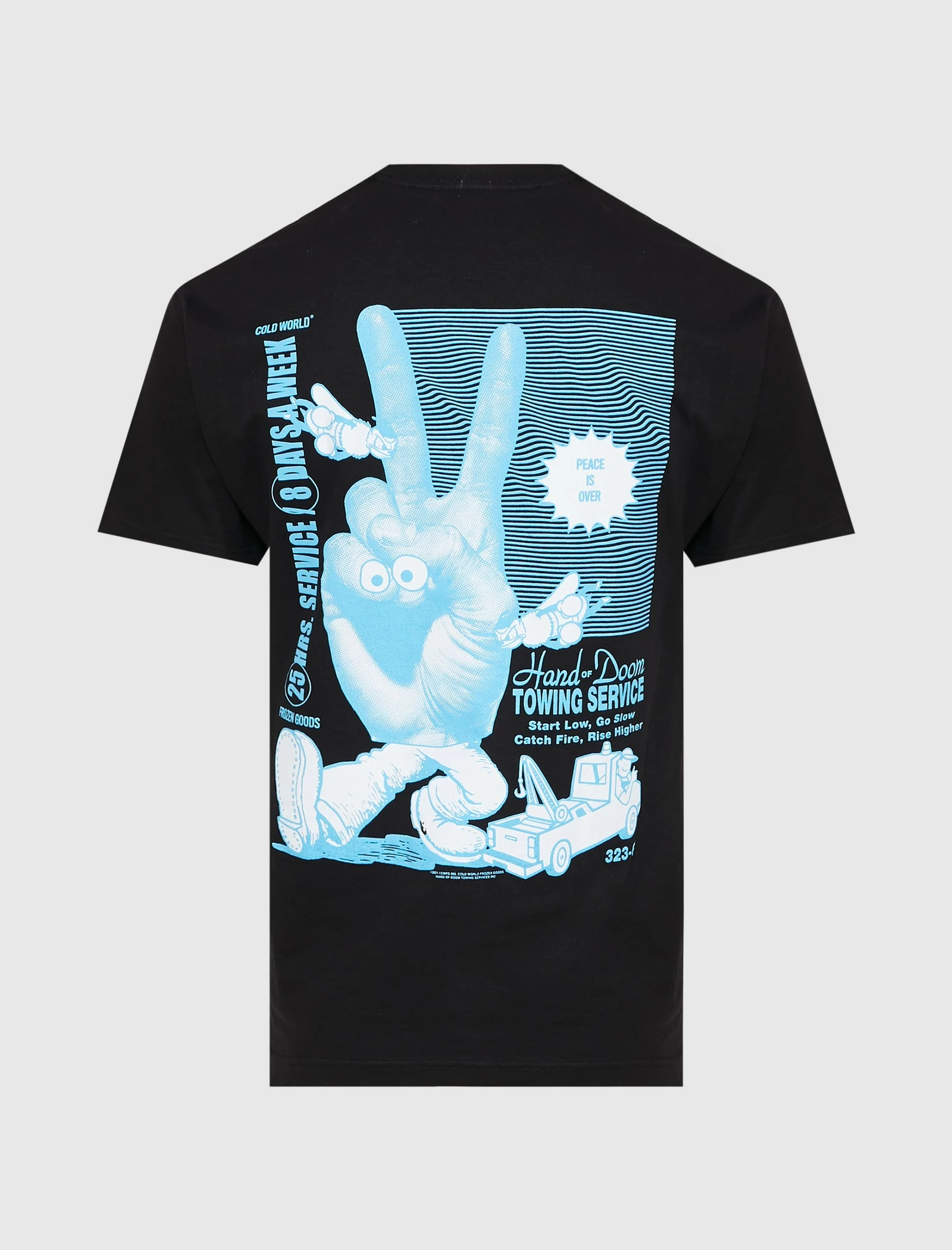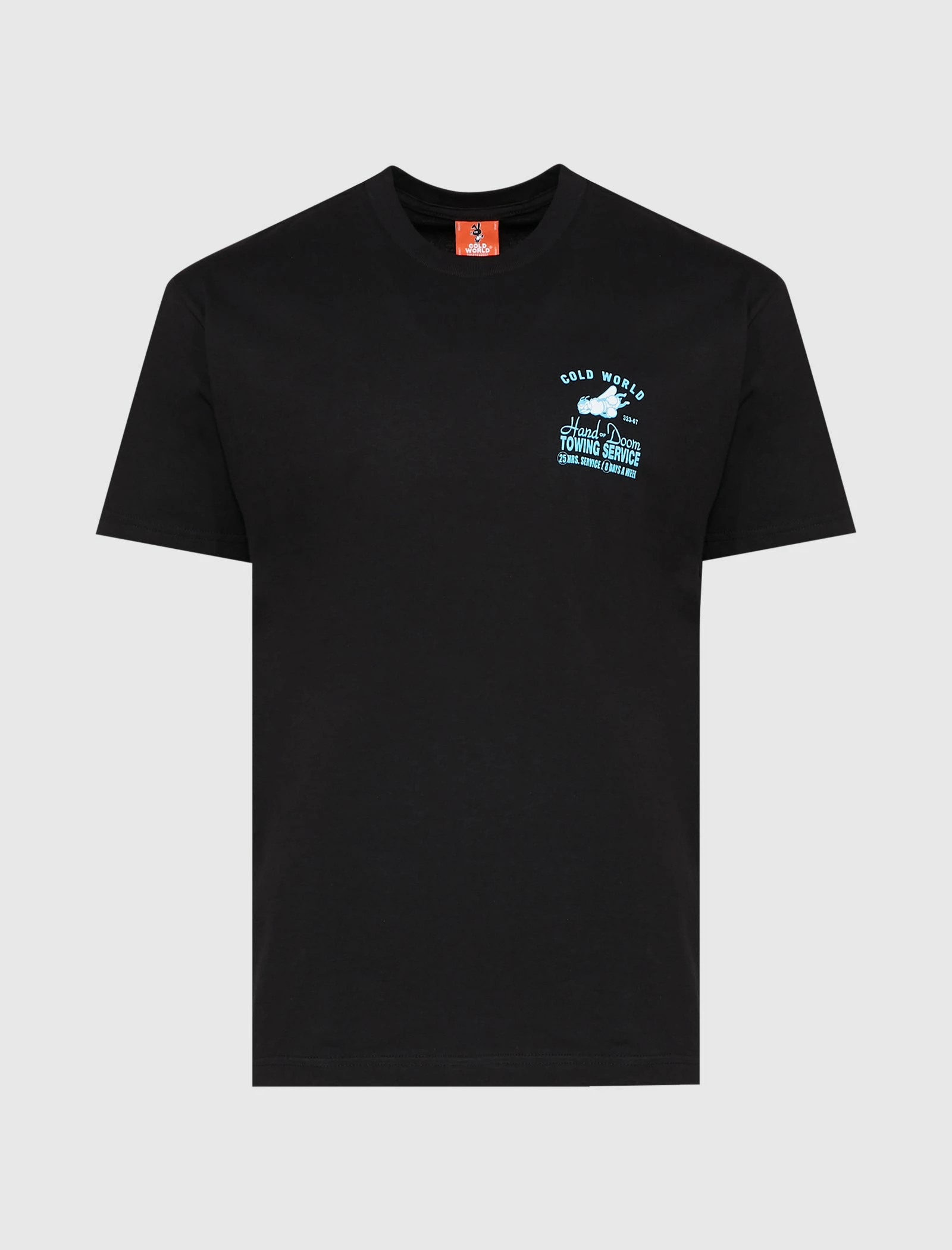 Short sleeve cotton t-shirt. Ribbed crewneck collar. Graphic printed on the front at left chest. Large graphic printed on the back. – Cotton SKU: CWD8-T05-BLK