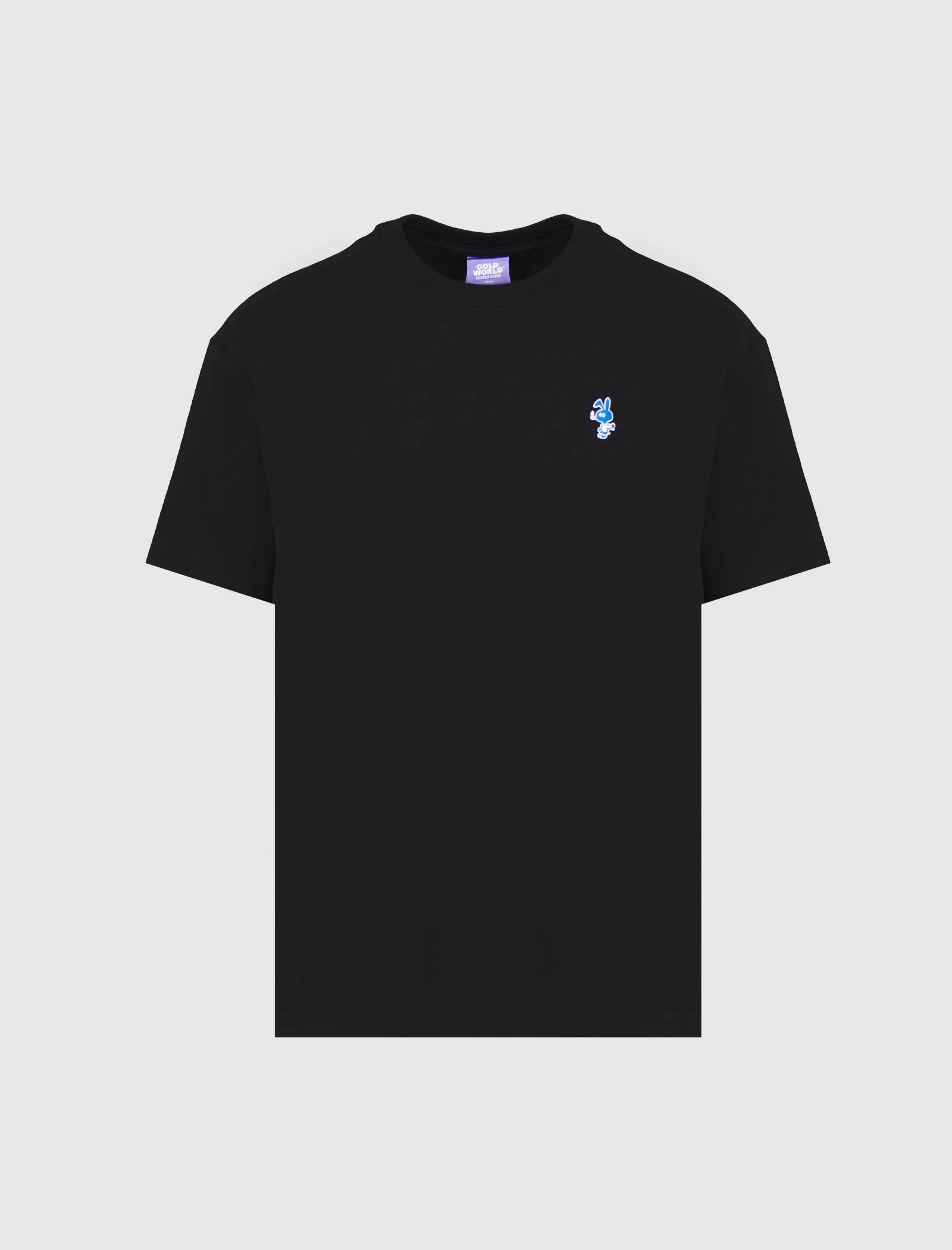 Short sleeve cotton t-shirt. Crewneck. Embroidered bunny at chest. Graphic print, text and logo text at back. – 100% Cotton SKU: CW11-T07-BLK