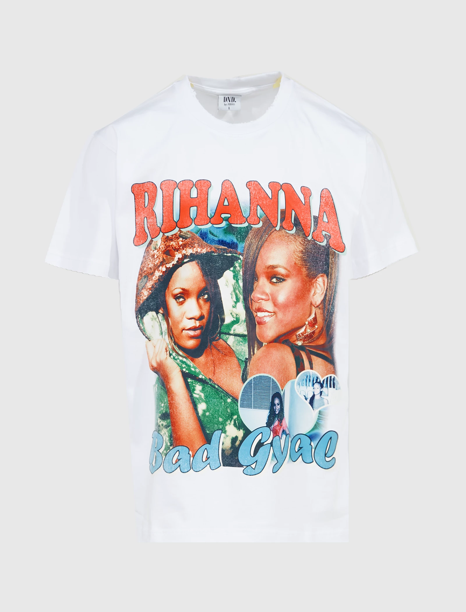 Short sleeve cotton t-shirt. Crewneck. Graphic Rihanna print and text at front. – 100% Cotton SKU: RIHANNA-TEE