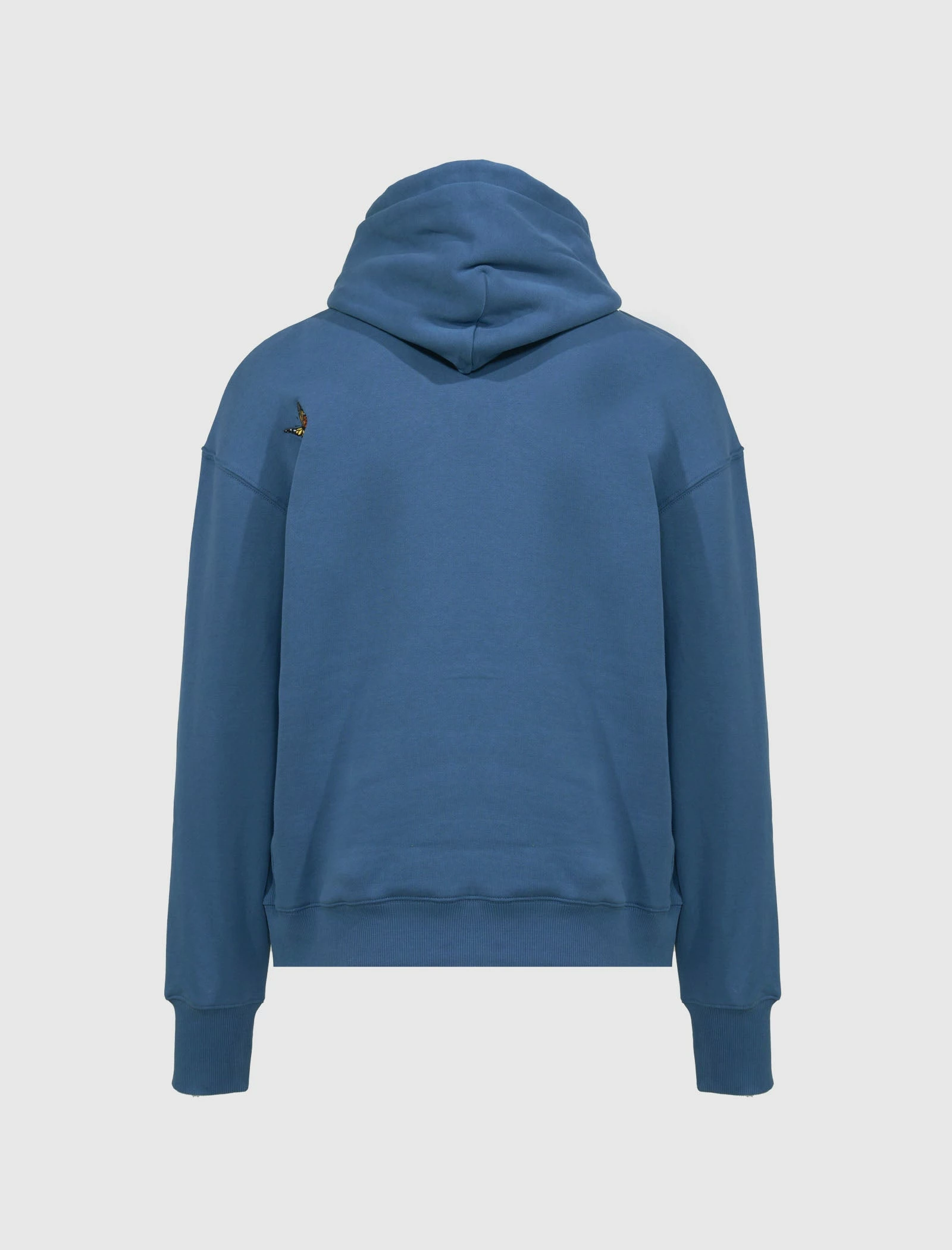 Cotton-blend hoodie. Adjustable drawstring hood. Embroidered logo text at chest. Embroidered butterfly graphics throughout. Kangaroo pocket at front. Ribbed cuffs and hem. – 70% Cotton, 30% Polyester Blend SKU: FLFW22-BH-BLU