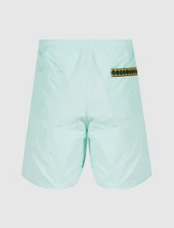 Crinkle nylon shorts. Adjustable drawstring waistband. Two pockets at sides. Single pocket at back featuring tribal pattern. – 100% Nylon SKU: 121-2107-BAY