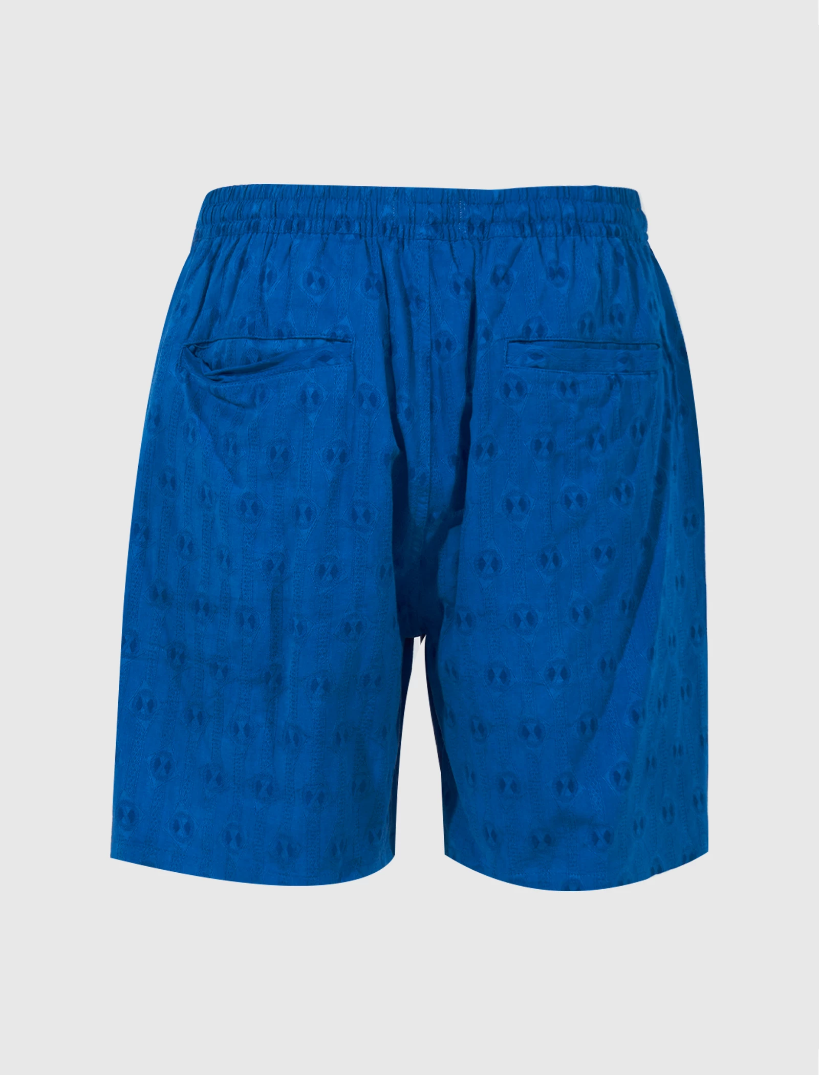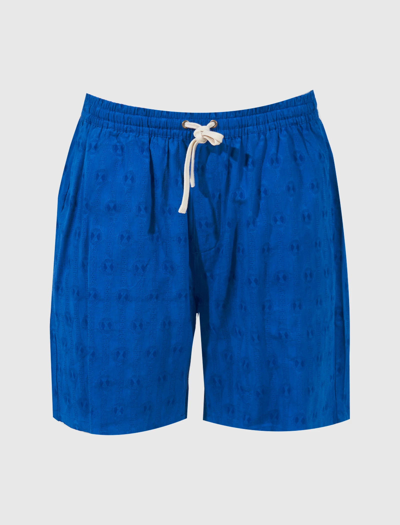 Cotton shorts. Elasticized drawstring waistband. Two pockets at sides. Single pocket at back. Jacquard print throughout. – 100% Cotton SKU: HTG220220-PABLUE