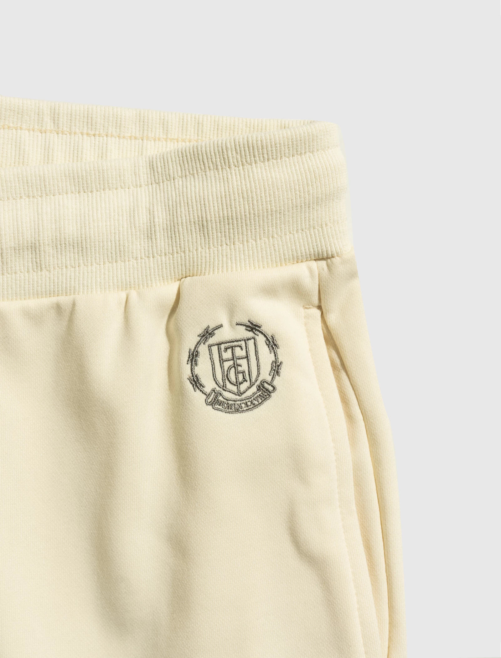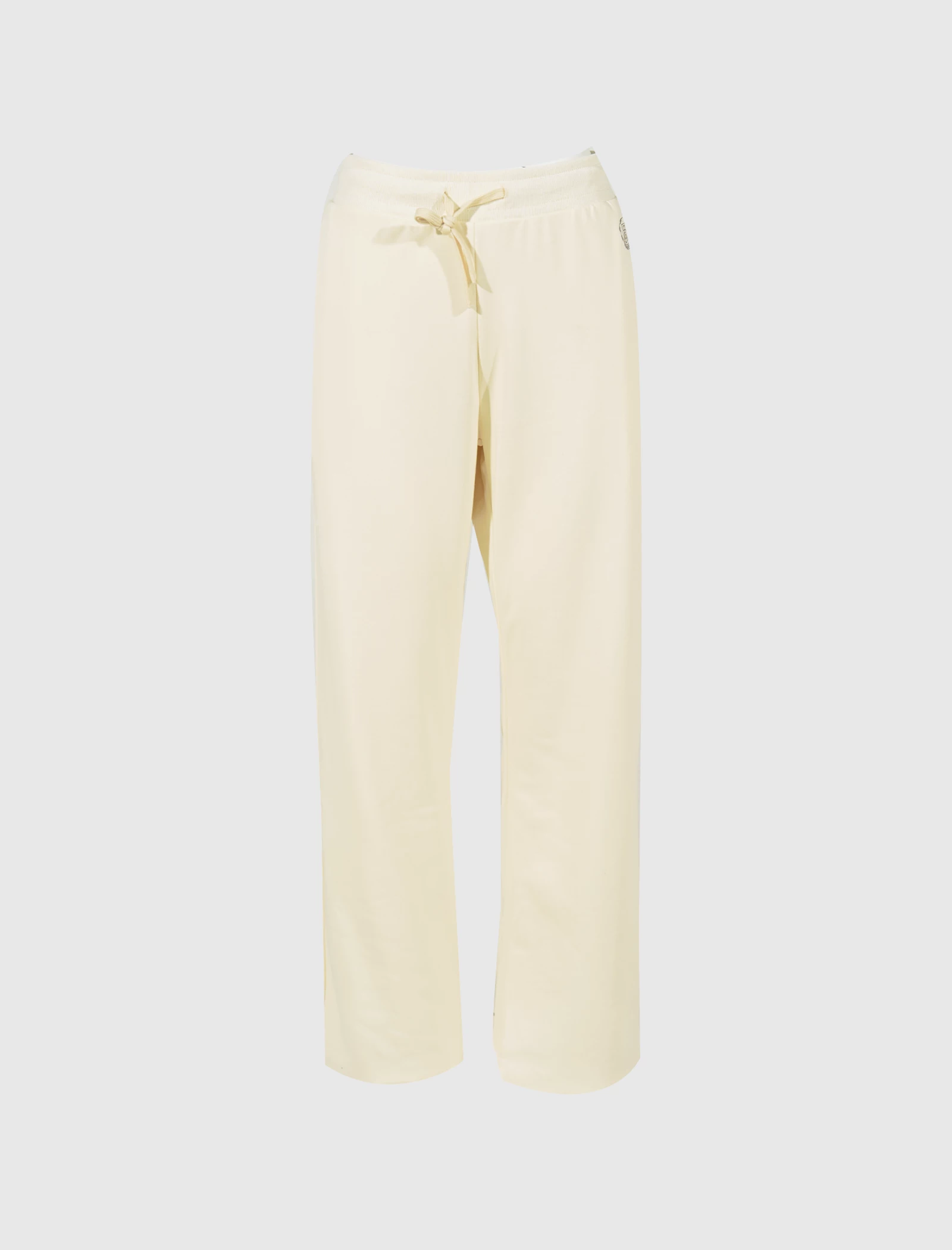 Cotton-blend wide-leg pants. Adjustable drawstring waistband. Two pockets at sides. Embroidered logo at front. Raw-edge hems. – 84% Cotton, 16% Polyester SKU: WHTG220210-BONE