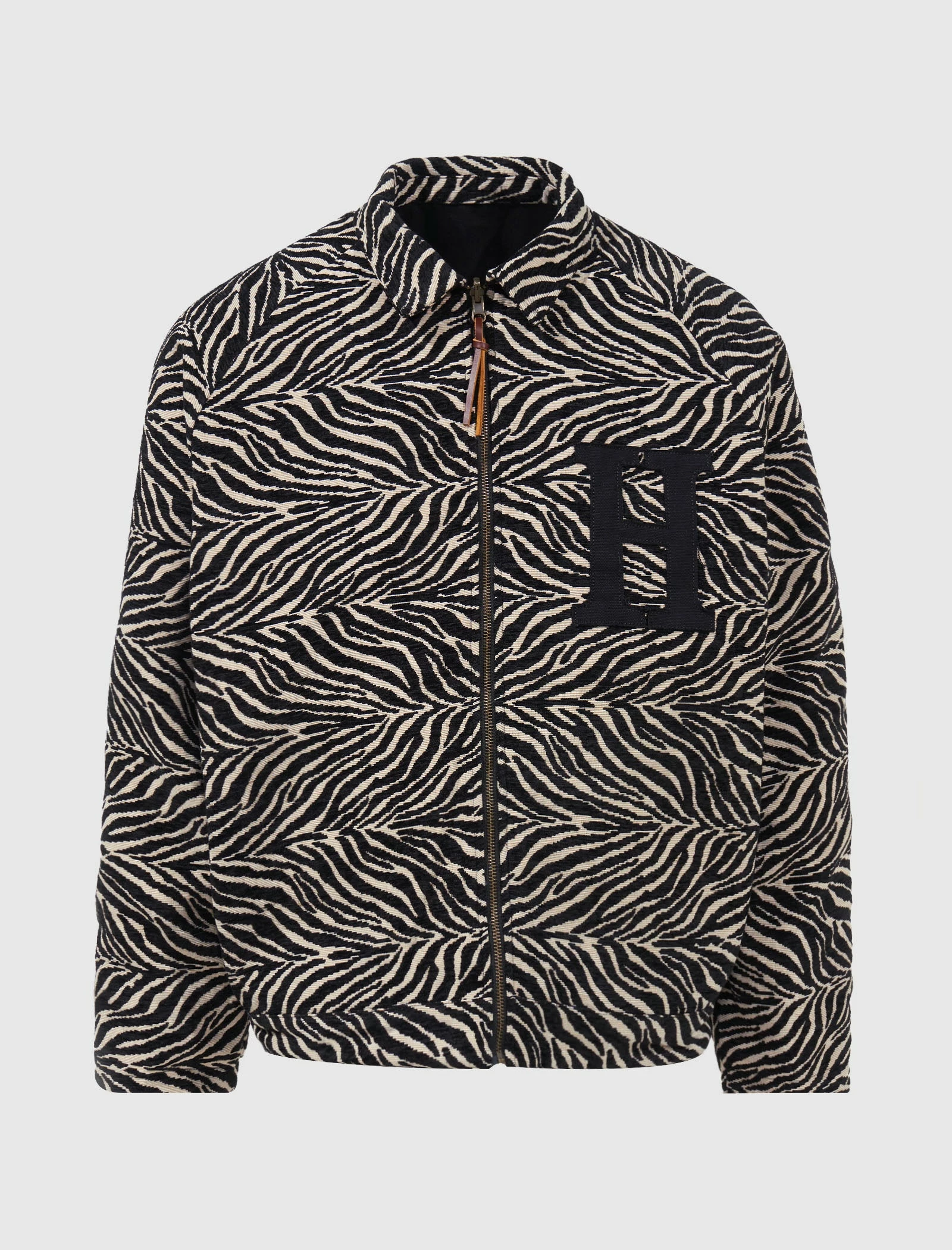 Reversible jacket. Pointed collar. Embroidered logo initial at chest. Two pockets at sides. Zebra pattern throughout. Zip closure at front. – 100% Cotton SKU: HTG220362