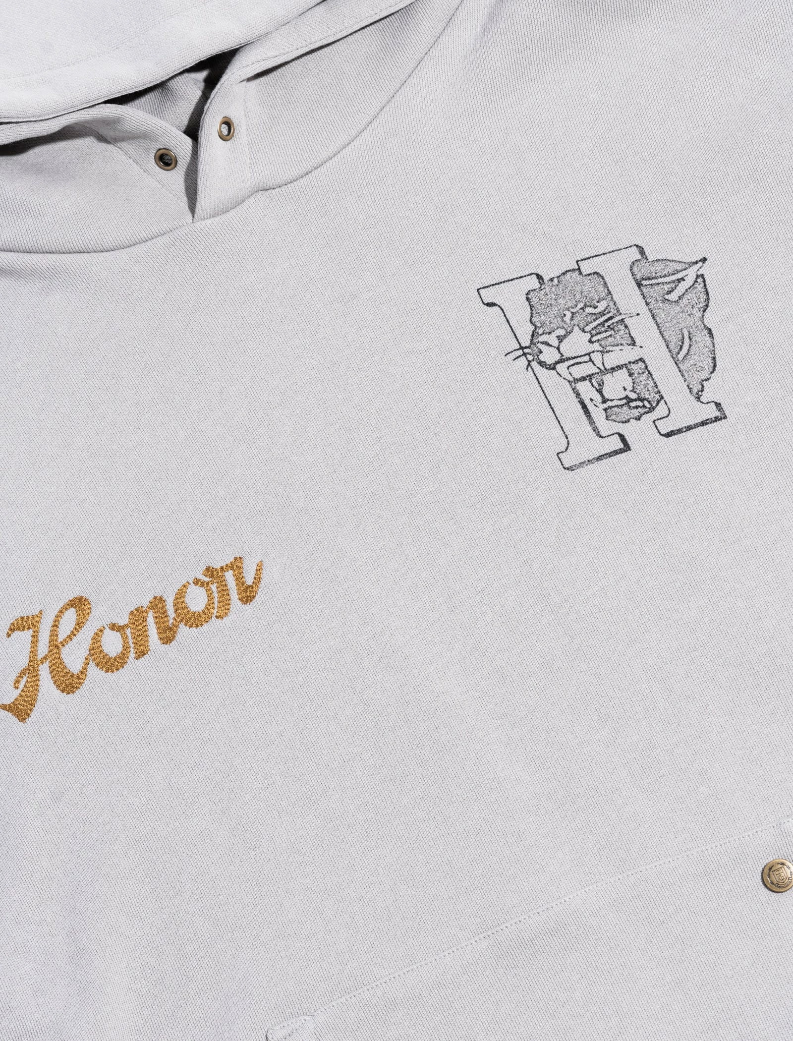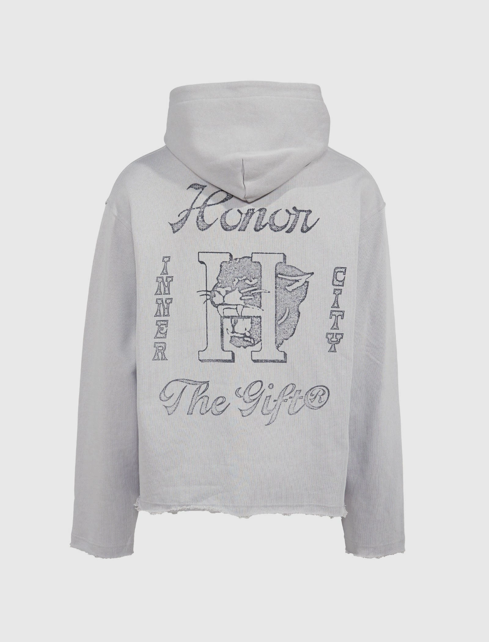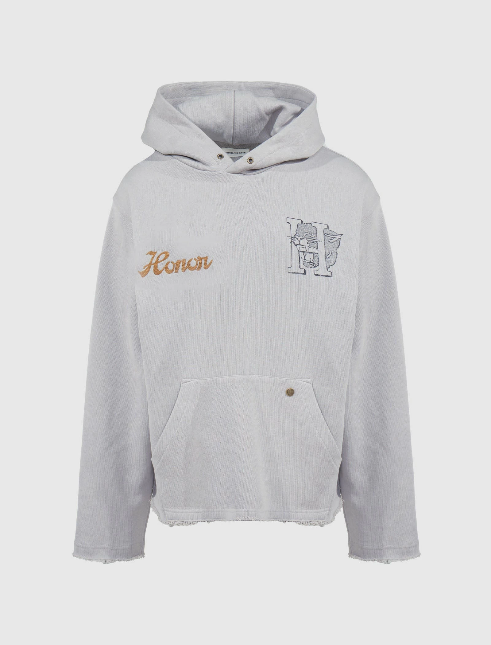 Pullover hoodie. Fixed hood. Graphic logo print and embroidered logo text at chest. Kangaroo pocket at front. Graphic logo text, text and logo print at back. – 100% Cotton SKU: HTG220360