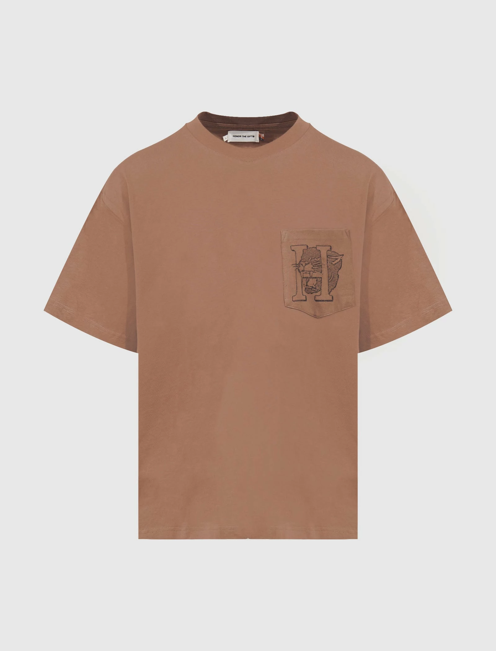 Short sleeve cotton t-shirt. Crewneck. Graphic logo print and single pocket at chest. Graphic logo print, logo text and text at back. – 100% Cotton SKU: HTG220342-BROWN