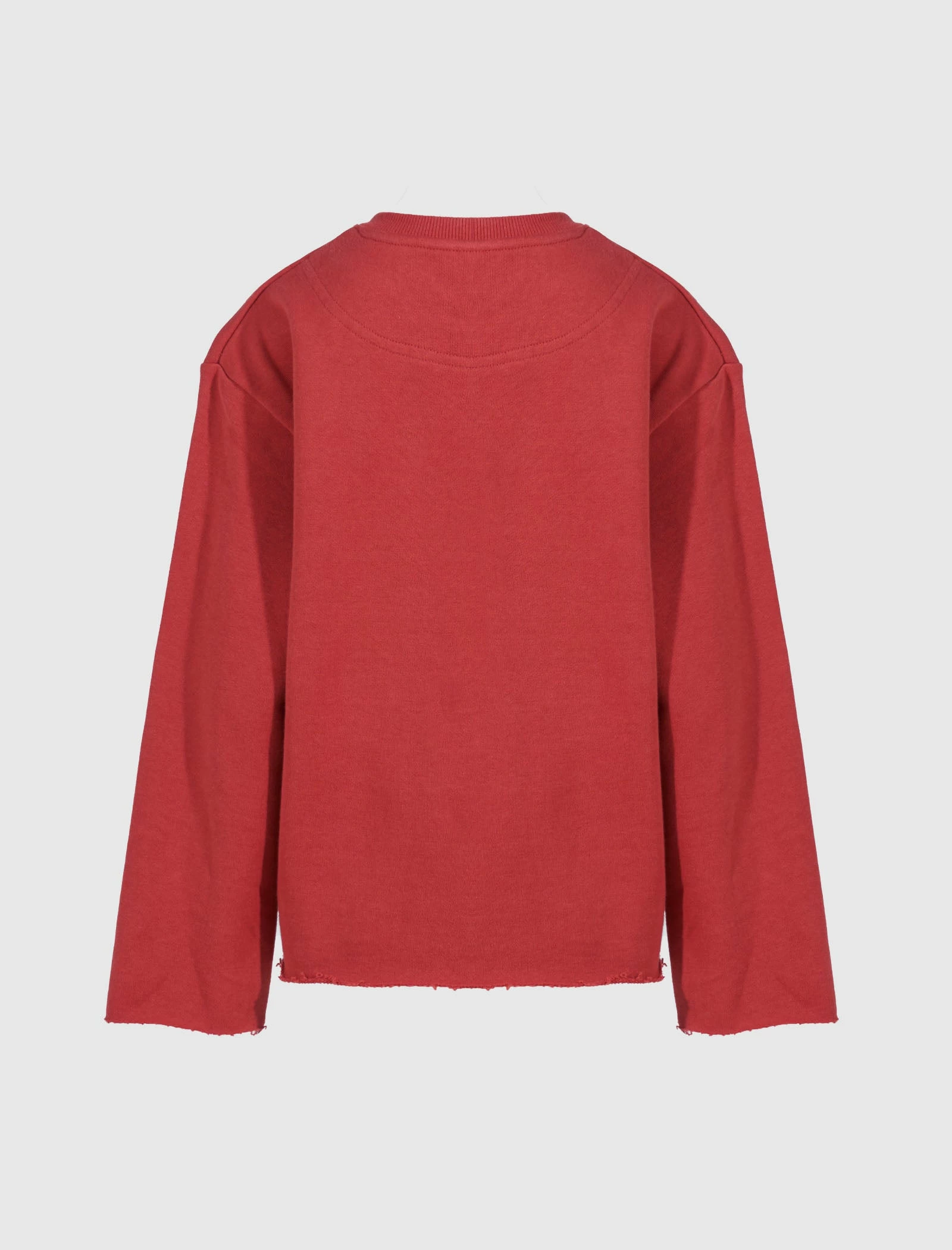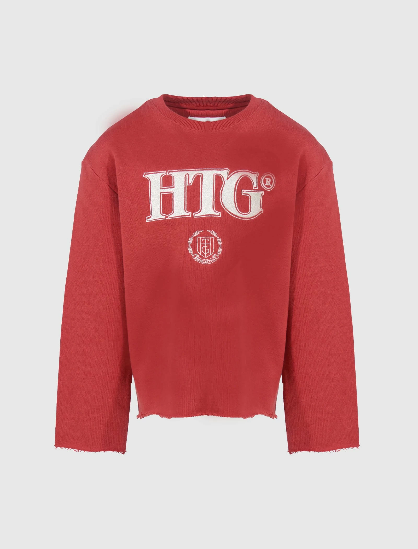 Long sleeve sweatshirt. Crewneck. Embroidered logo text and print at chest. Raw-edge hem and cuffs. – 100% Cotton SKU: KHTG220150-CRIMSON