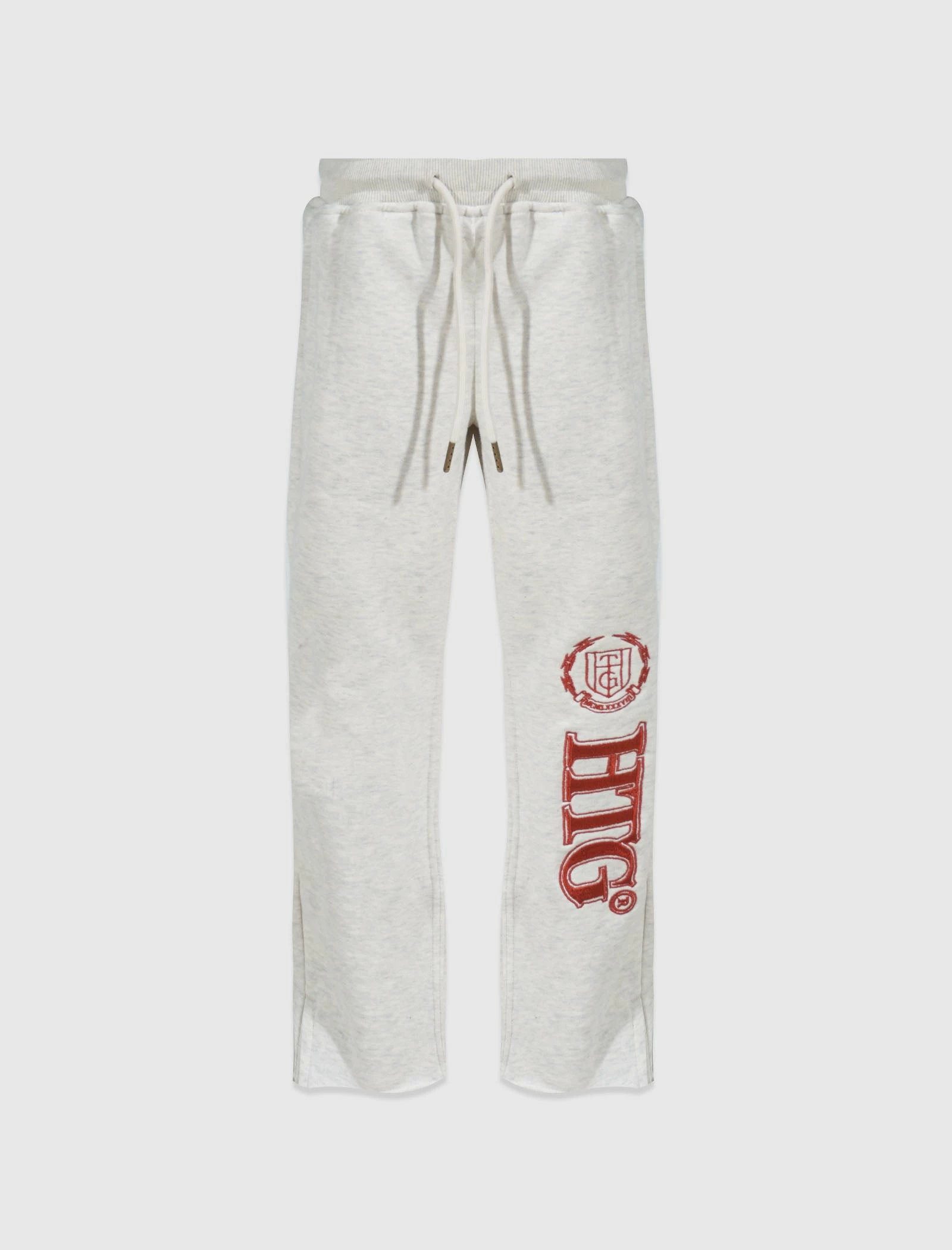 Cotton sweatpants. Adjustable drawstring waistband. Two pockets at sides. Single pocket featuring logo patch at back. Embroidered print and logo text at pants leg. – 100% Cotton SKU: KHTG220112-OATMEAL