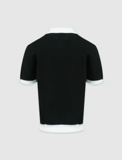 Short sleeve knit polo shirt. Ribbed folded collar. 3-button front closure. Jacquard knit striped patterns down the sides. Knit cuffs, and hem. – Cotton SKU: HTG220440