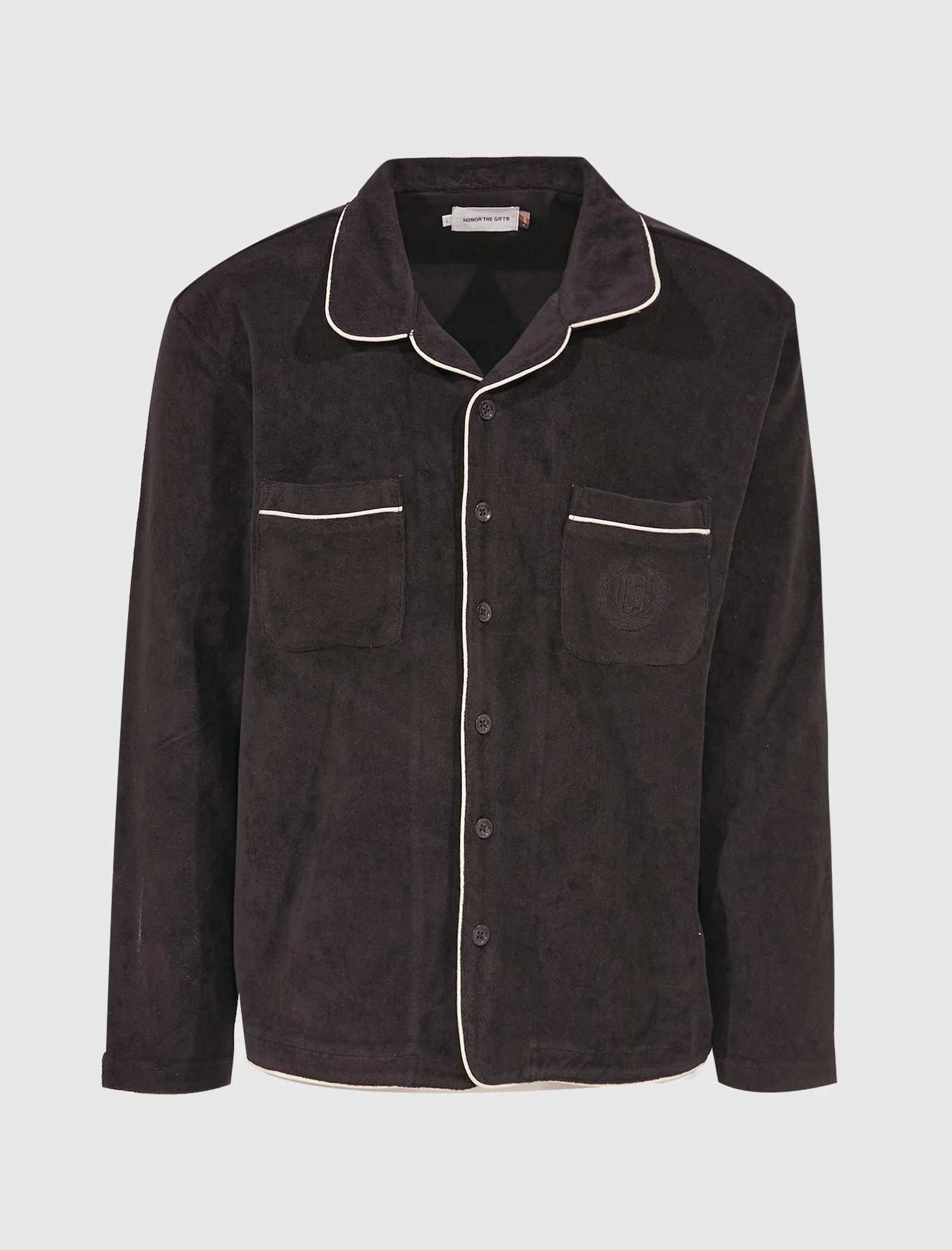 Terry cloth pajama shirt. Contrast piping. Two pockets at chest. Embroidered logo at chest. Button closures at front. – 100% Cotton SKU: HTG210430
