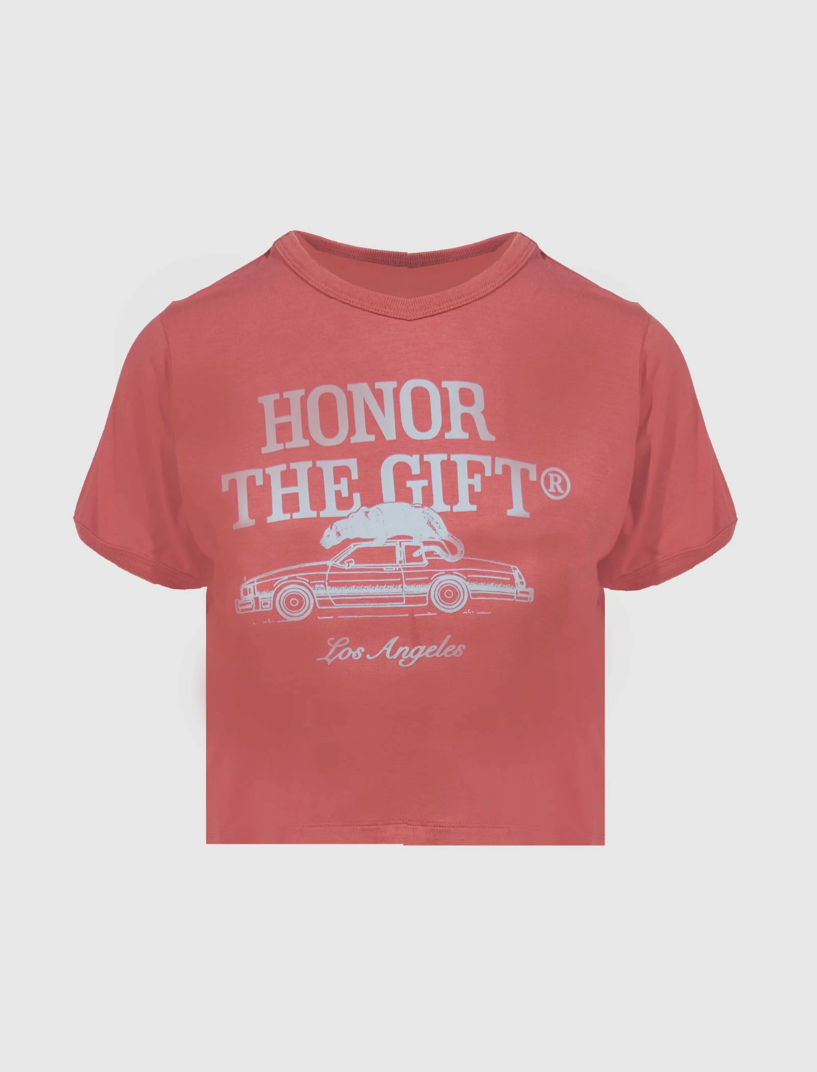 Short sleeve t-shirt. Crewneck. Graphic logo text and print at chest. – 100% Modal SKU: WHTG220141-CRIMSON