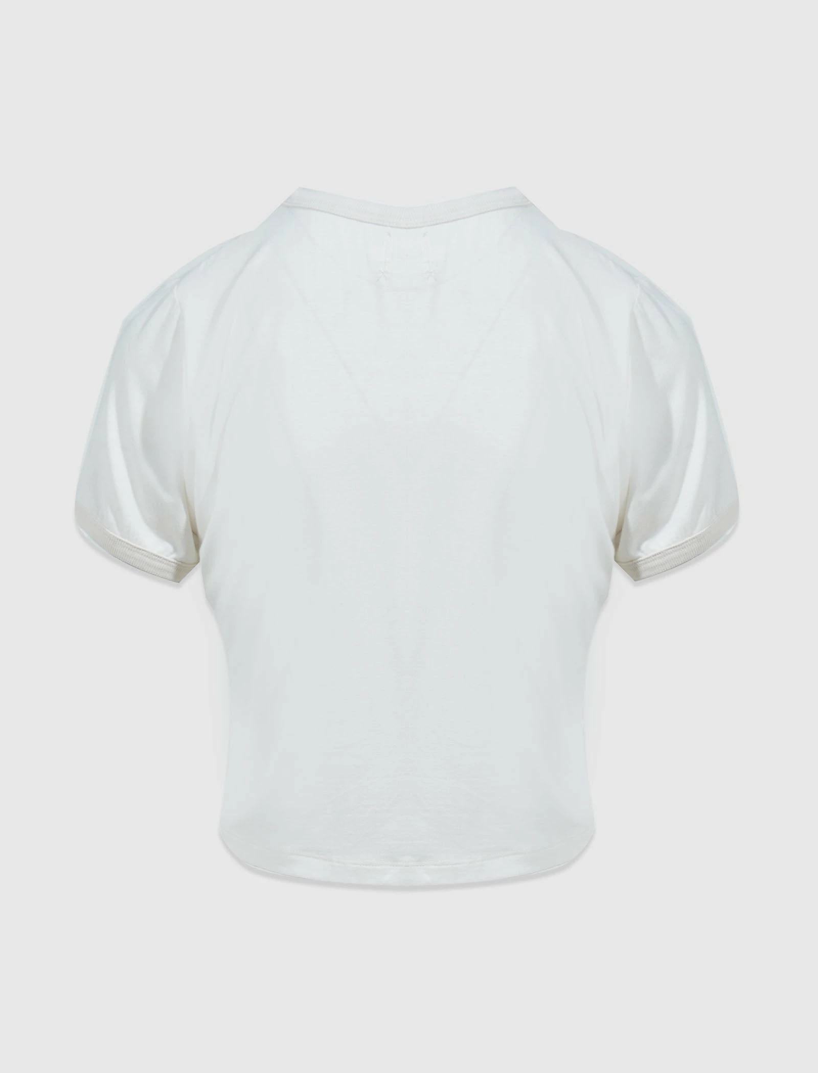 Short sleeve cotton t-shirt. Crewneck. Graphic logo text and prints at chest. – 100% Modal SKU: WHTG220141-CREAM