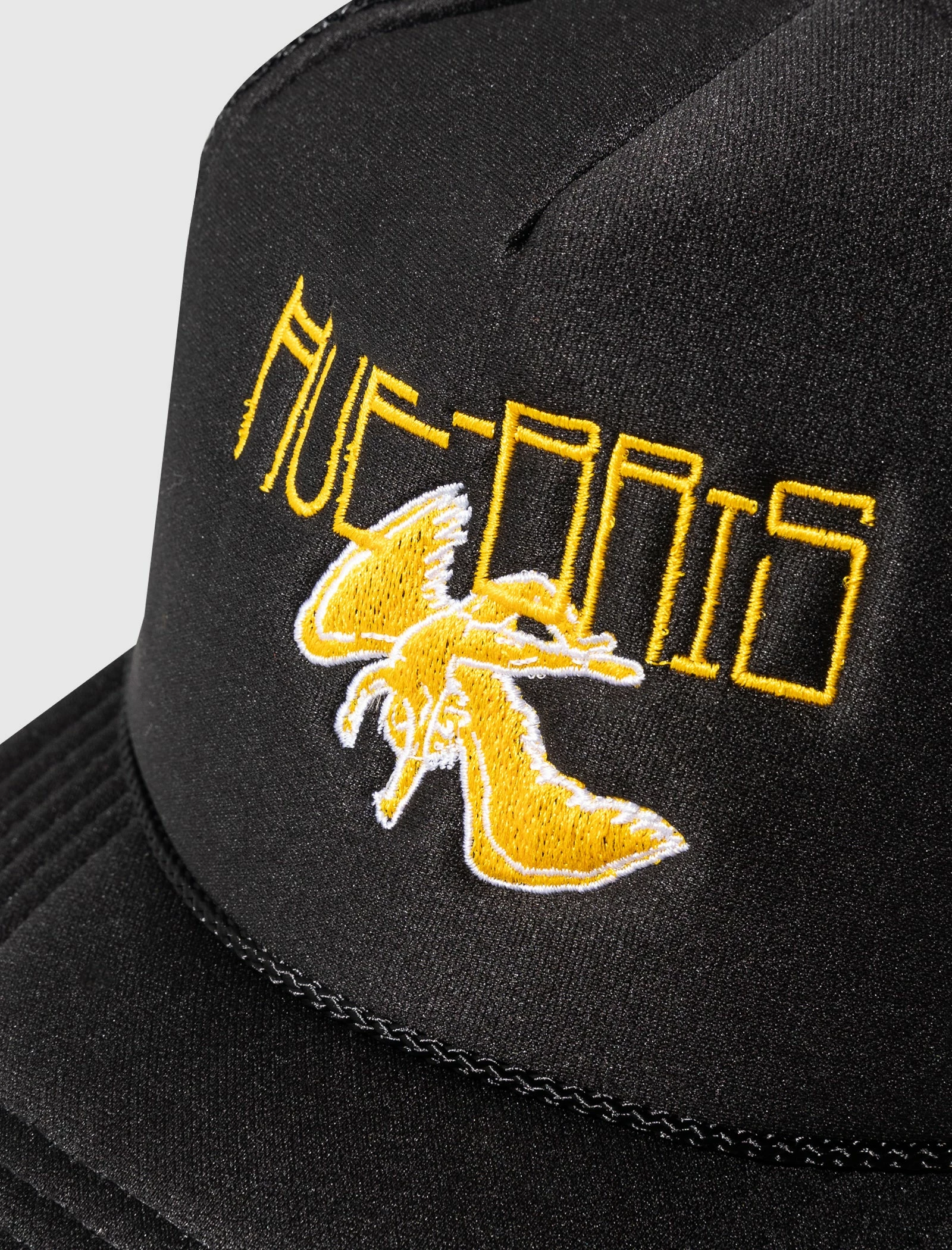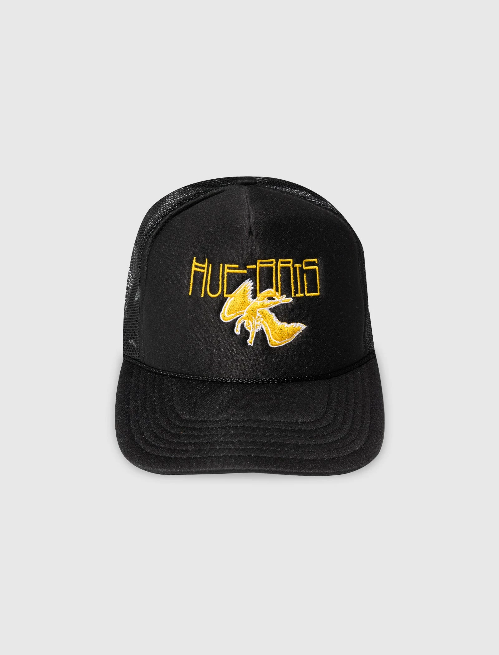 Trucker hat. Curved brim. Embroidered logo and logo text at front and back. – 100% Polyester SKU: HOH-CC-TRUCKER1-BLKXWHT