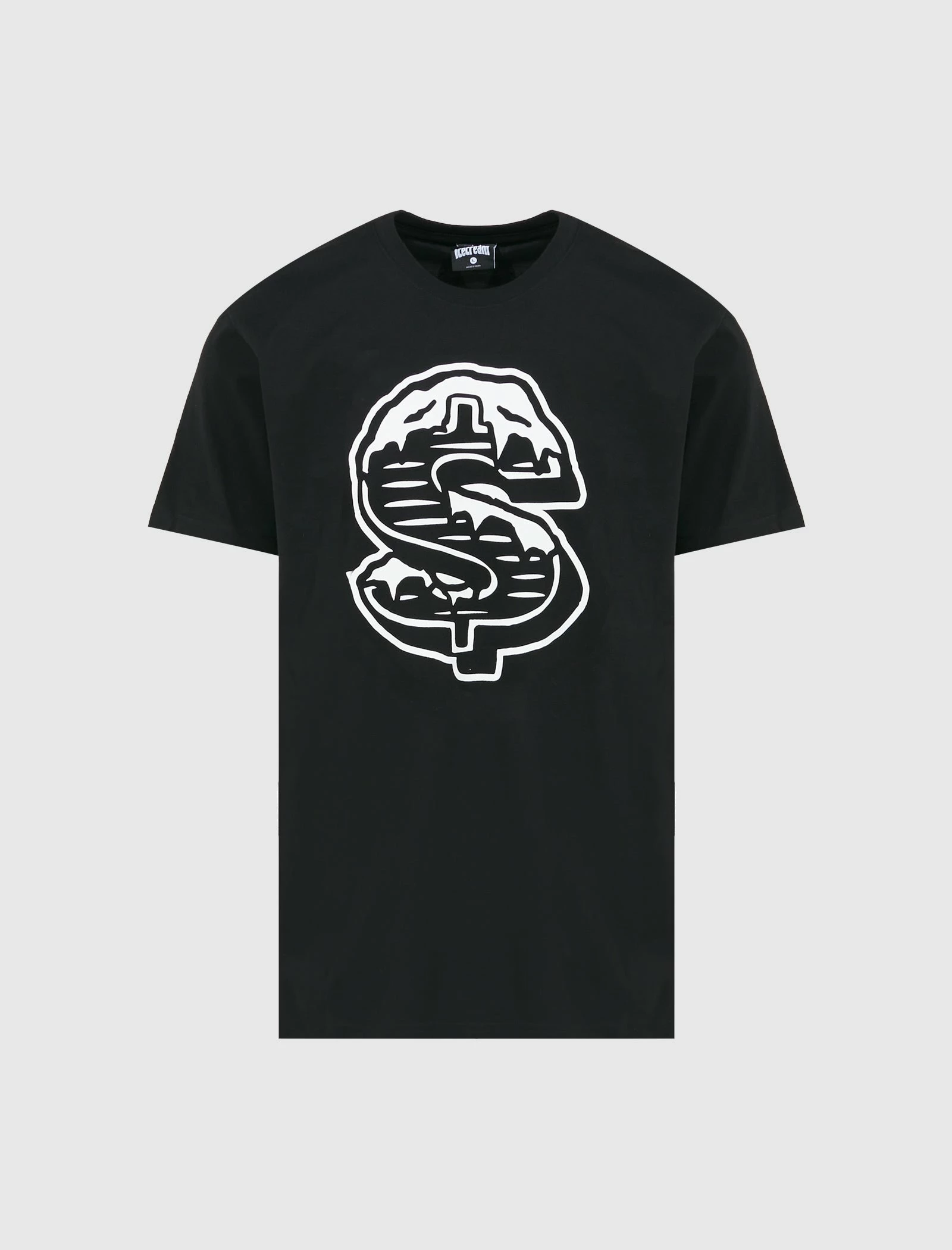 Short sleeve cotton t-shirt. Crewneck. Graphic dollar sign print at chest. Graphic logo text at back. – 100% Cotton SKU: 411-9203-BLK