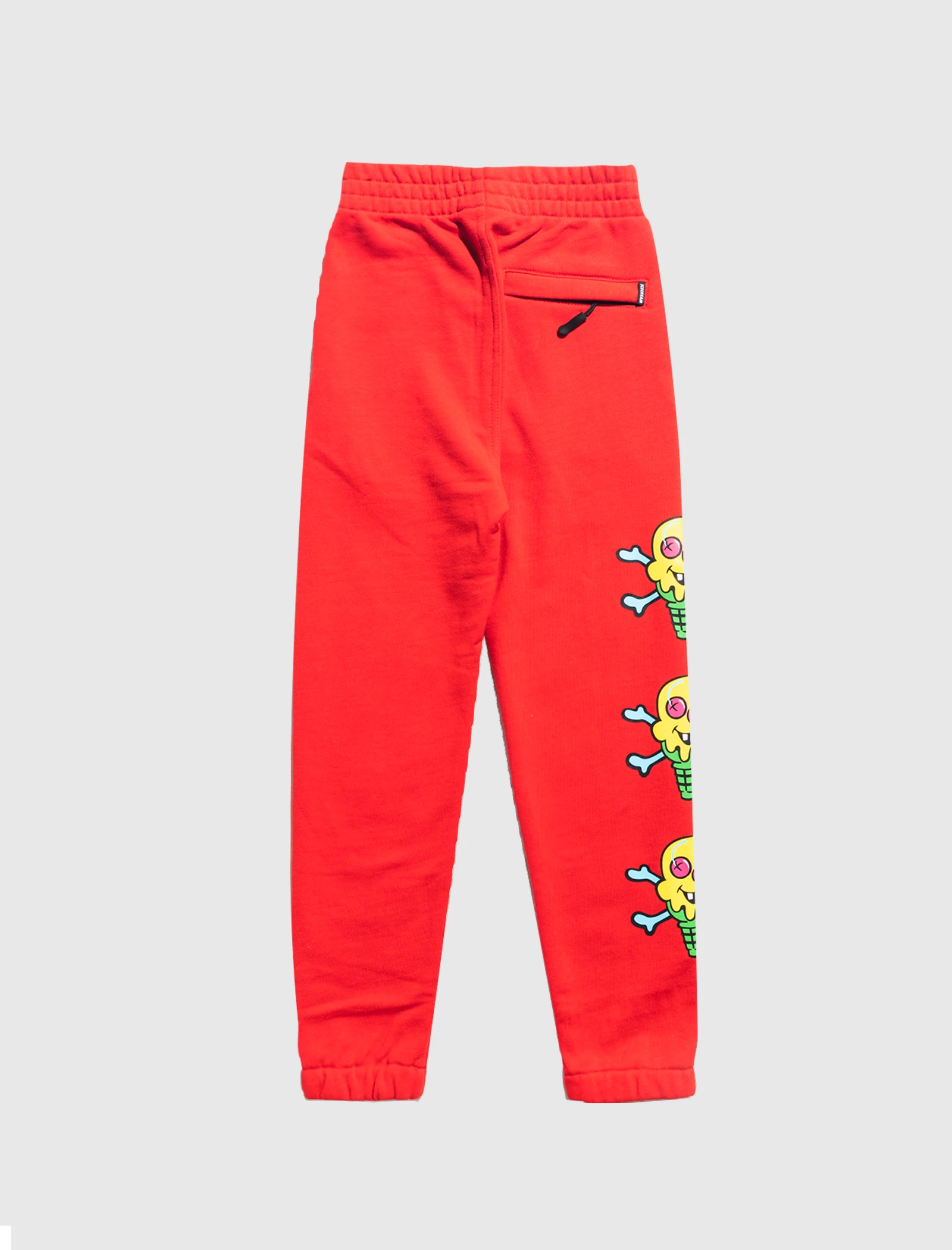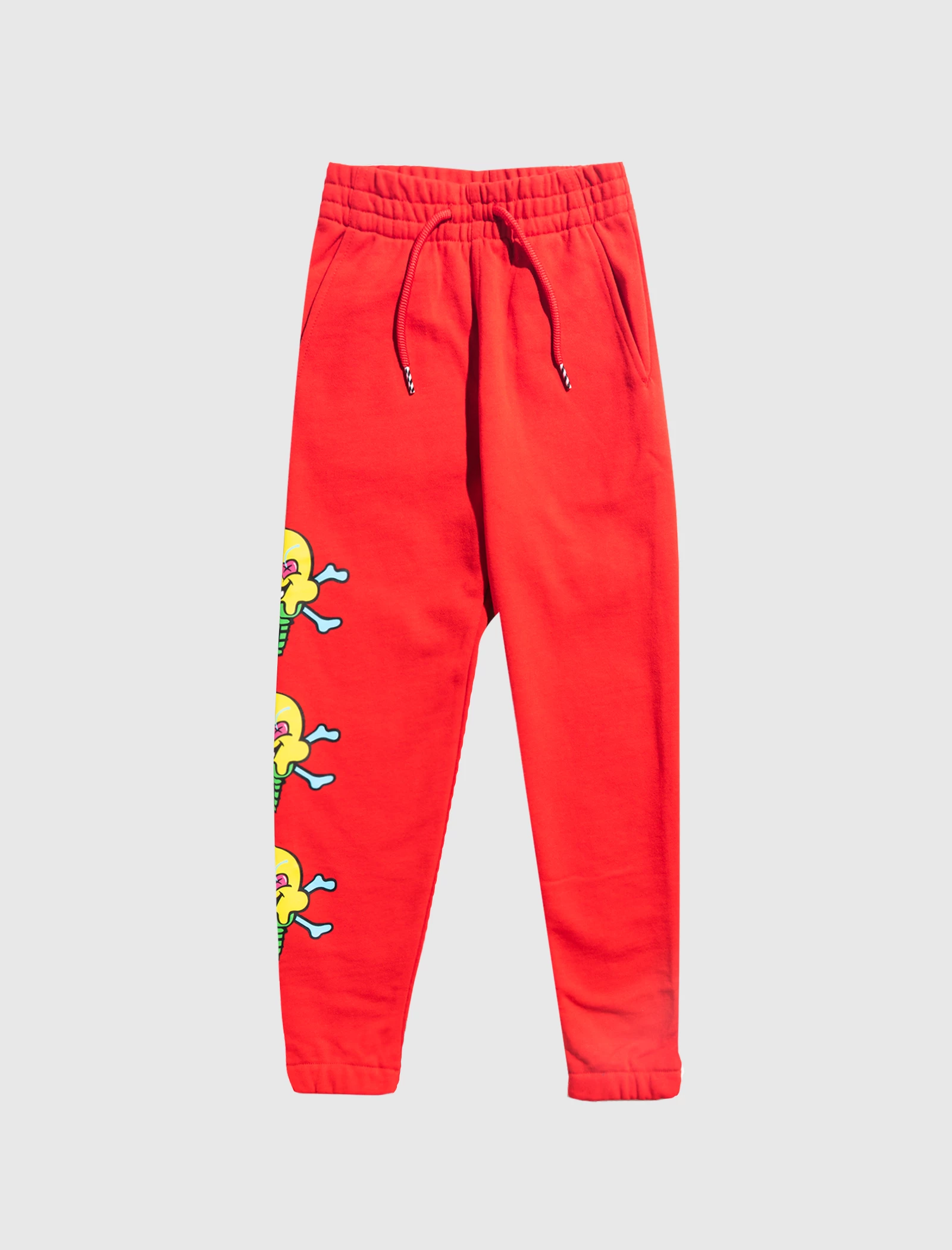 Cotton sweatpants. Adjustable drawstring waistband. Two pockets at sides. Single pocket at back. Graphic prints at sides. – 100% Cotton SKU: 493-6101-RED