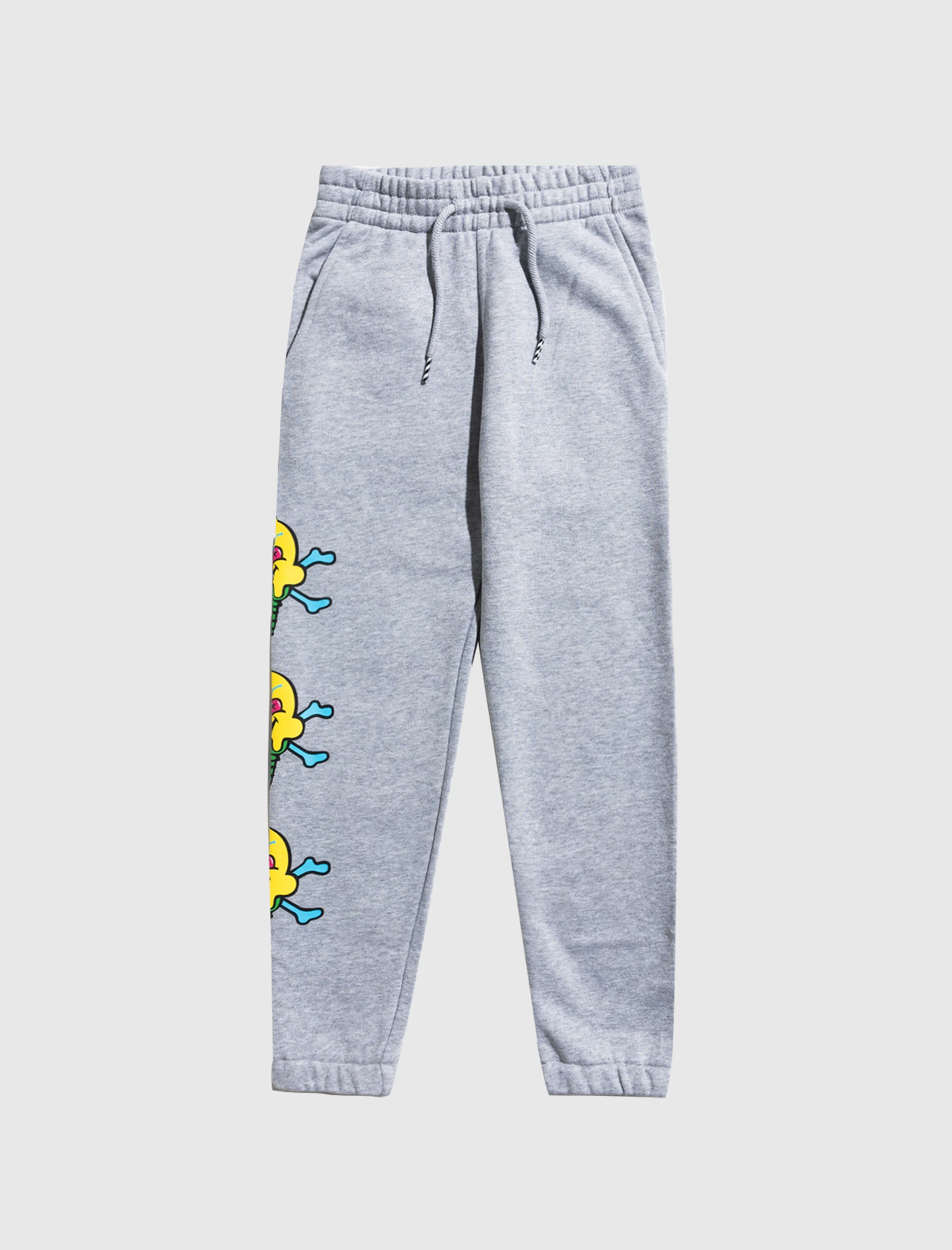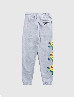Cotton sweatpants. Adjustable drawstring waistband. Two pockets at sides. Single pocket at back. Graphic prints at sides. – 100% Cotton SKU: 493-6101-GRY