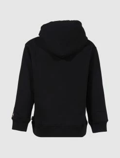 Pullover cotton-blend hoodie. Adjustable drawstring hood. Graphic logo print at chest. Kangaroo pocket at front. Ribbed cuffs and hem. 80% Cotton, 20% Polyester SKU: 423-8301-BLK