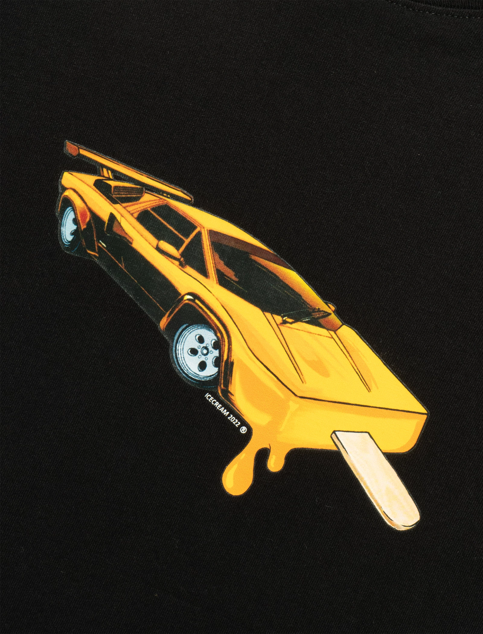 Short sleeve cotton t-shirt. Crewneck. Graphic car print at chest. Graphic logo text at back. – 100% Cotton SKU: 421-3206-BLK