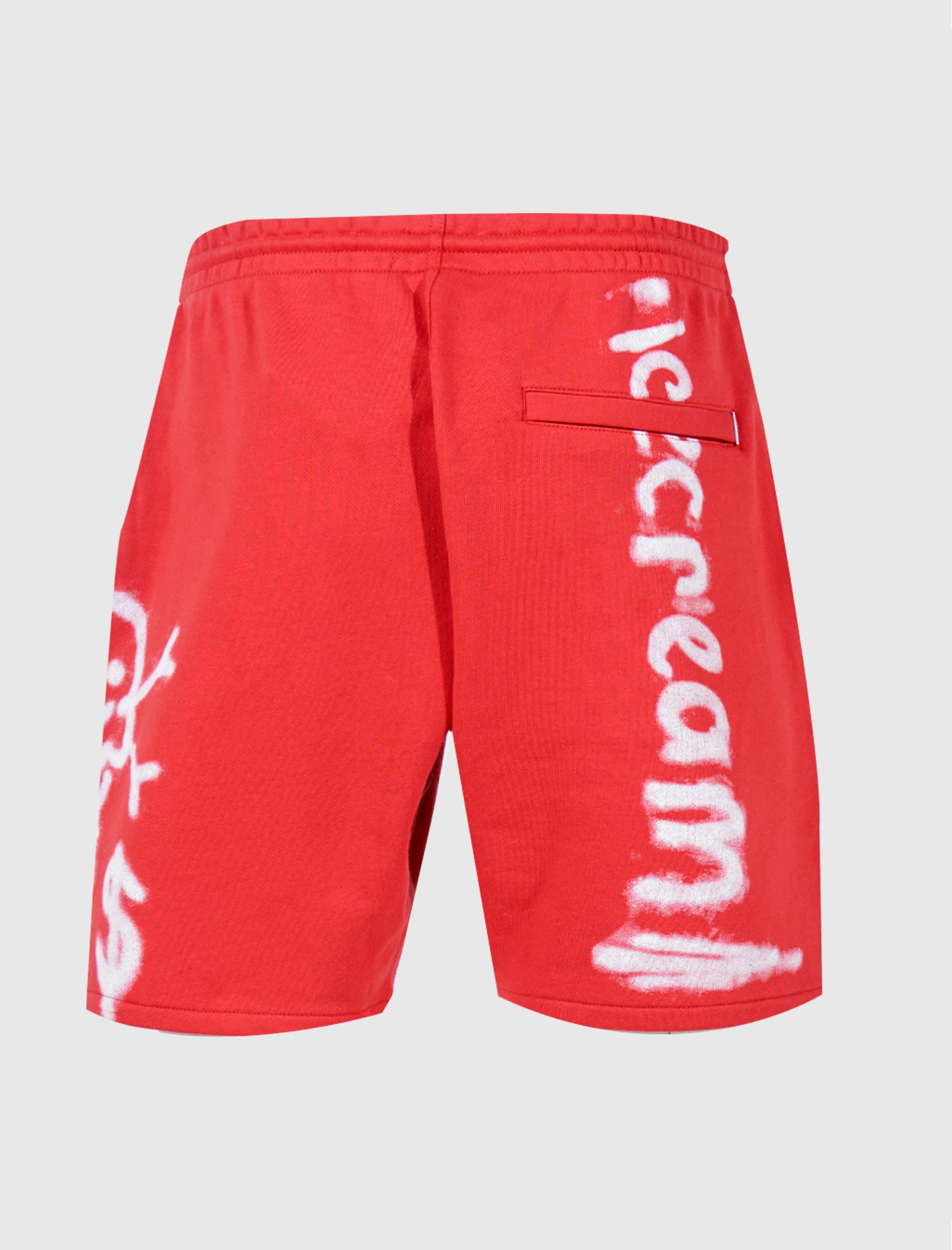 Cotton sweat shorts. Adjustable drawstring waistband. Two pockets at sides. Graphic print at side. Single pocket featuring graphic logo text at back. – 100% Cotton SKU: 421-4105-RED