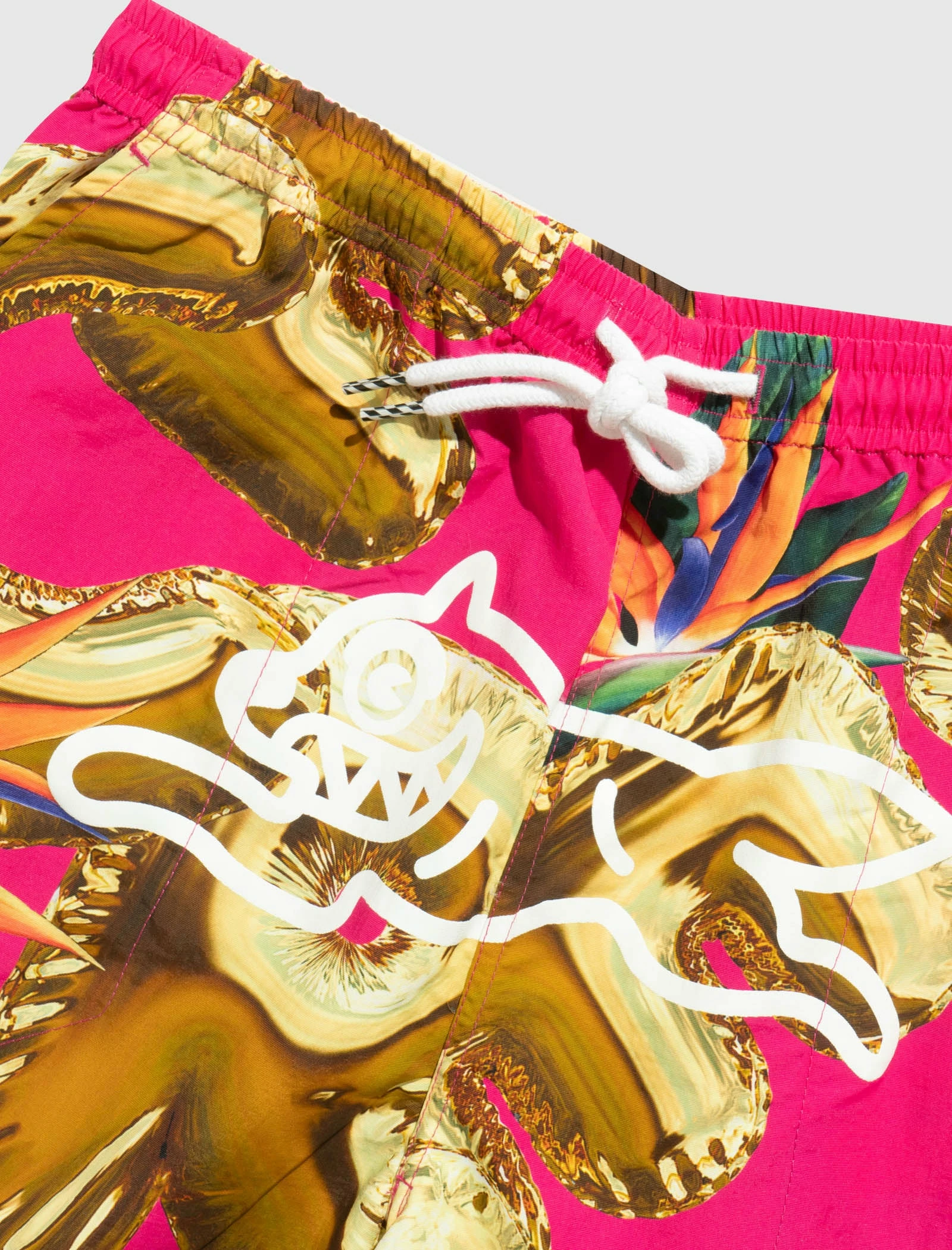 Nylon shorts. Adjustable drawstring waistband. Two pockets at sides. Graphic print throughout. Logo print at front. – 100% Nylon SKU: 421-3105-PNK