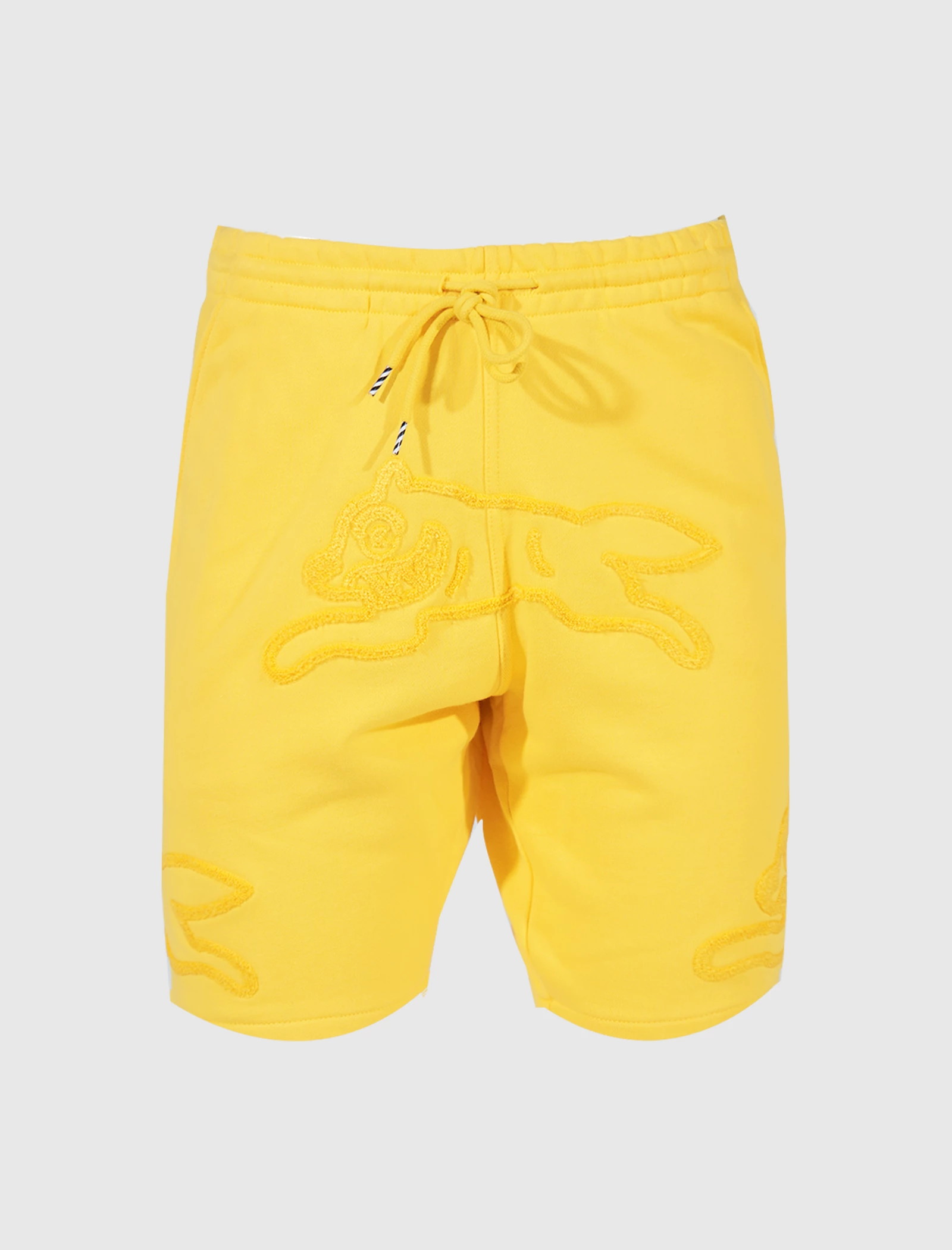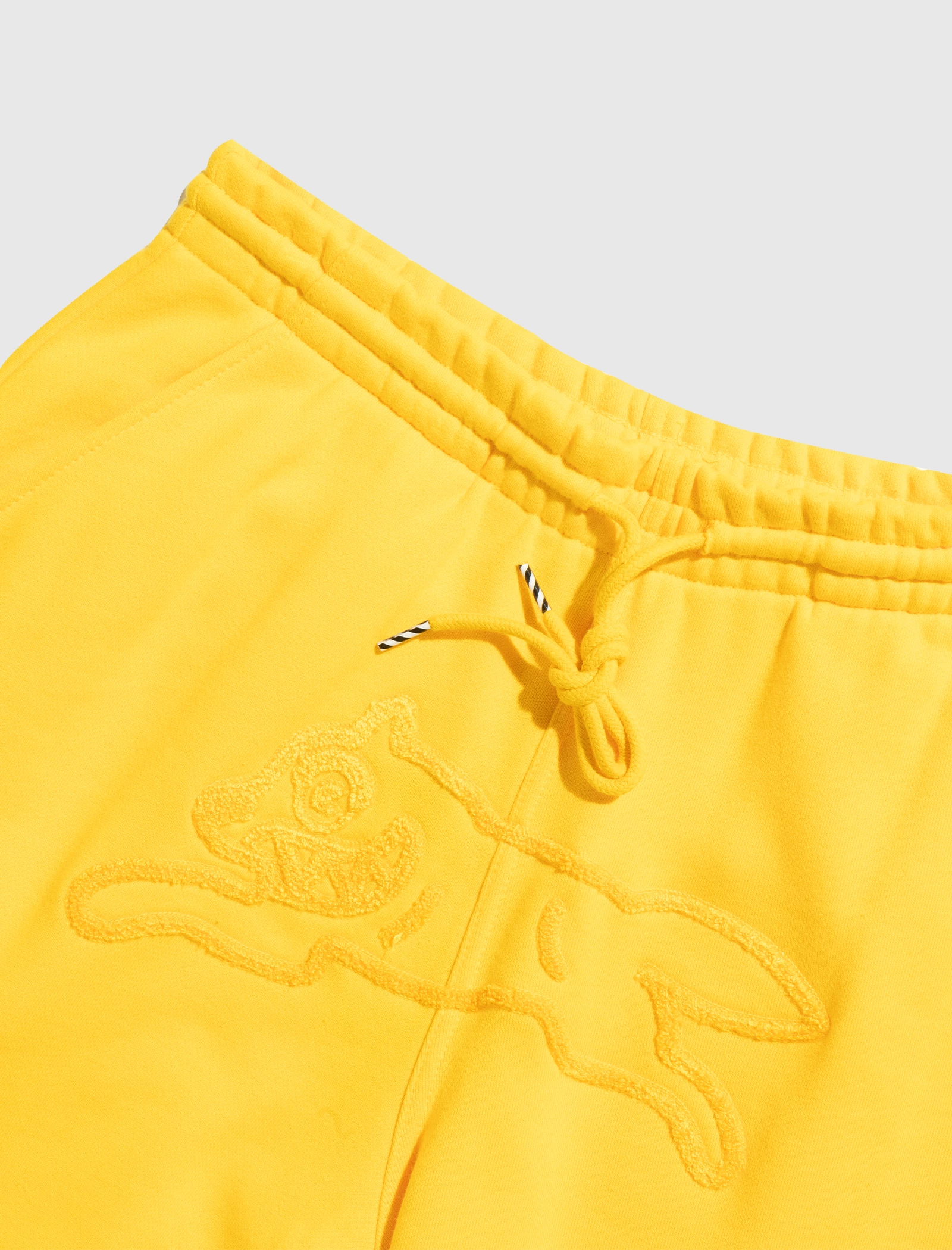 Cotton sweatshorts. Adjustable drawstring waistband. Two pockets at sides. Single zip pocket at back. Textured logo prints at front and sides. – 100% Cotton SKU: 421-3103-YEL