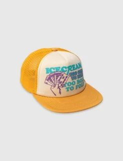 Trucker hat. Flat brim. Neoprene front panel. Puff print graphic on the front. Mesh back panel. Snapback closure. – Polyester SKU: 421-1804
