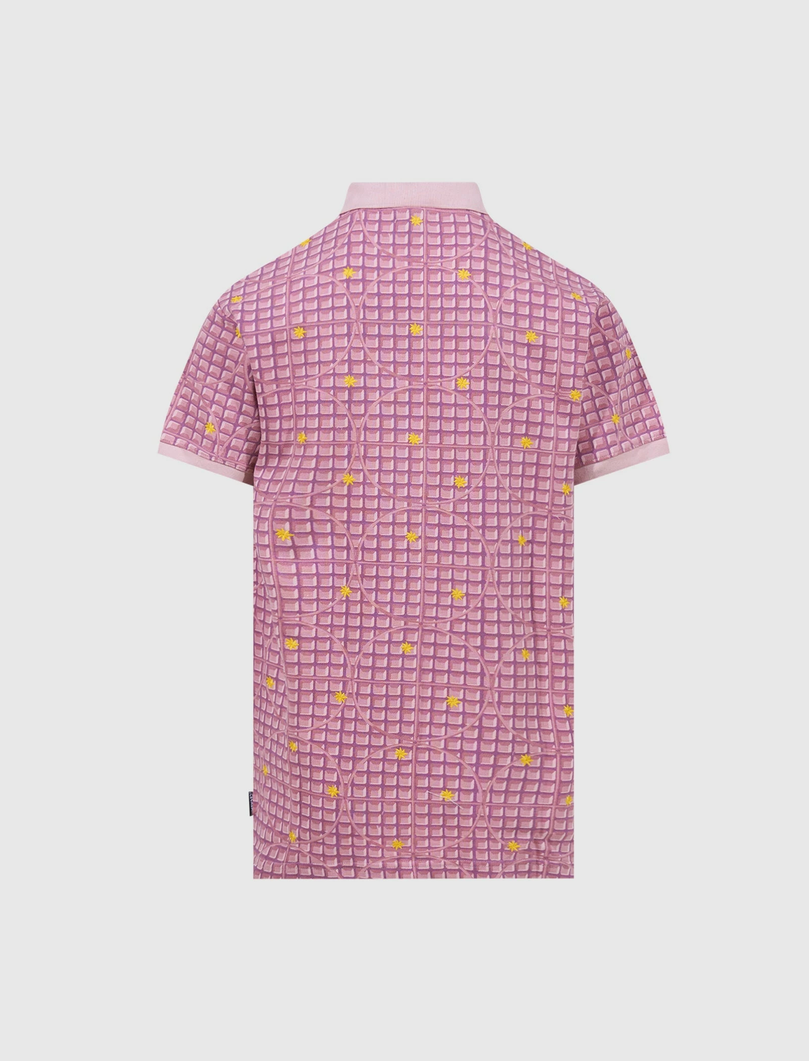 Short sleeve polo shirt. Spread collar. Graphic print throughout. Button closures at front. – 100% Cotton SKU: 421-2305