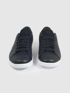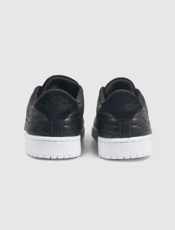 Low top sneaker. Leather upper. Front lacing. Round toe. Scale-like pattern stitched along the back heel. Front lacing. Suede tongue with an embossed logo. Suede heel tab with an embossed logo. Rubber midsole. Rubber outsole. – Leather and suede upper SKU: DJ2756-001