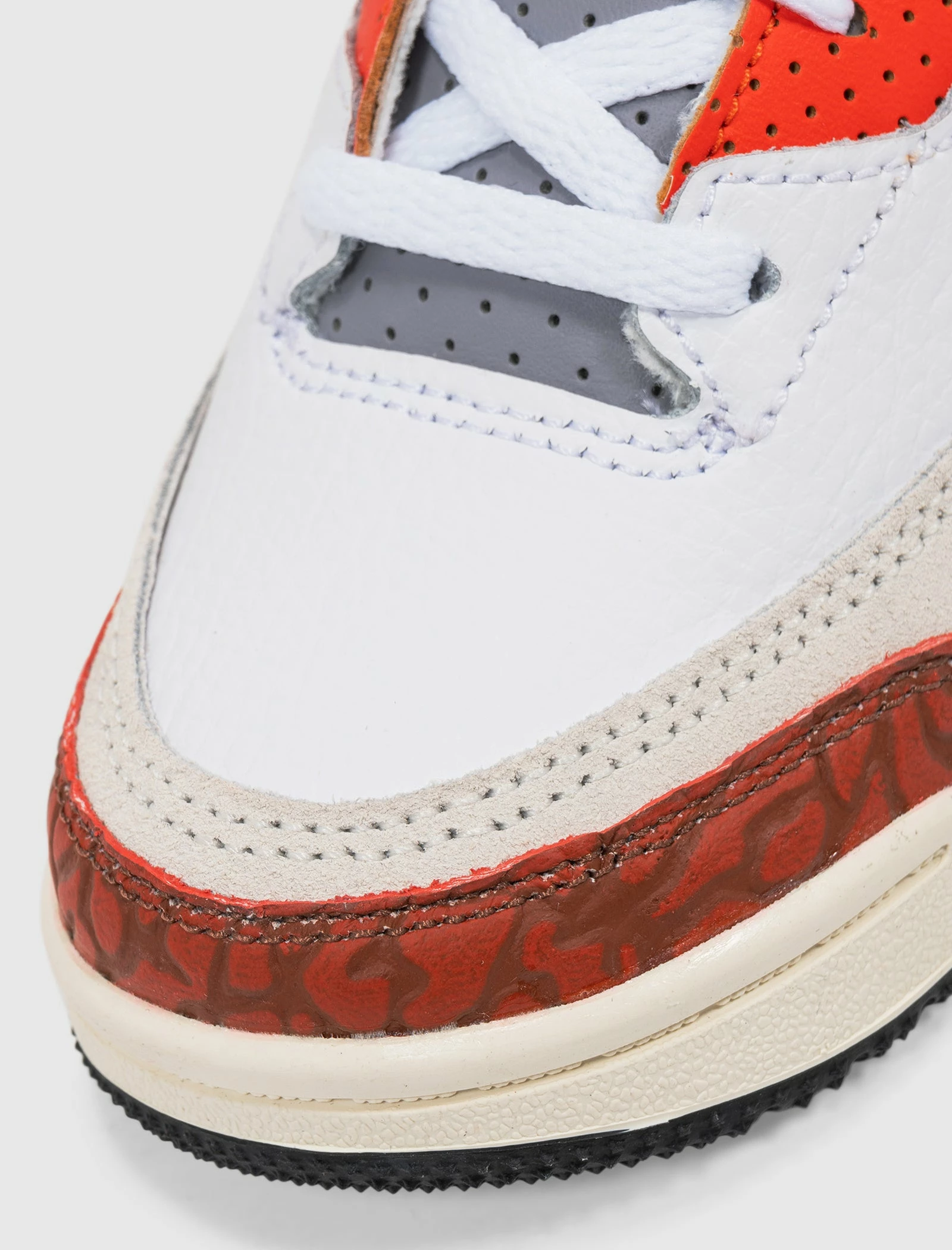 Low top sneakers. Leather upper. Suede overlays around the toe, and side panels. Leather overlays with stamped elephant print around the toe, and heel counter. Synthetic TPU heel counter with an embossed logo. Front lacing. Leather tongue with an embroidered logo. Soft textile lining. Perforated leather eyelet panels, and collar. EVA foam midsole. Rubber outsole. – Leather upper SKU: DV7026-108